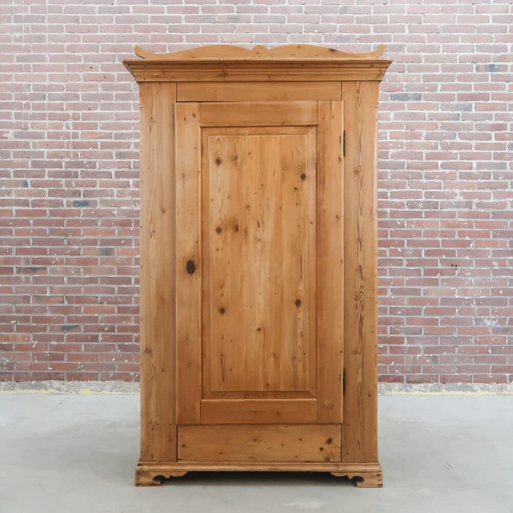 Karaktervolle antieke linnenkast van massief grenenhout. Prachtig verweerd en helemaal klaar voor een tweede leven. Ideaal als kledingkast of sfeermaker in je interieur.
