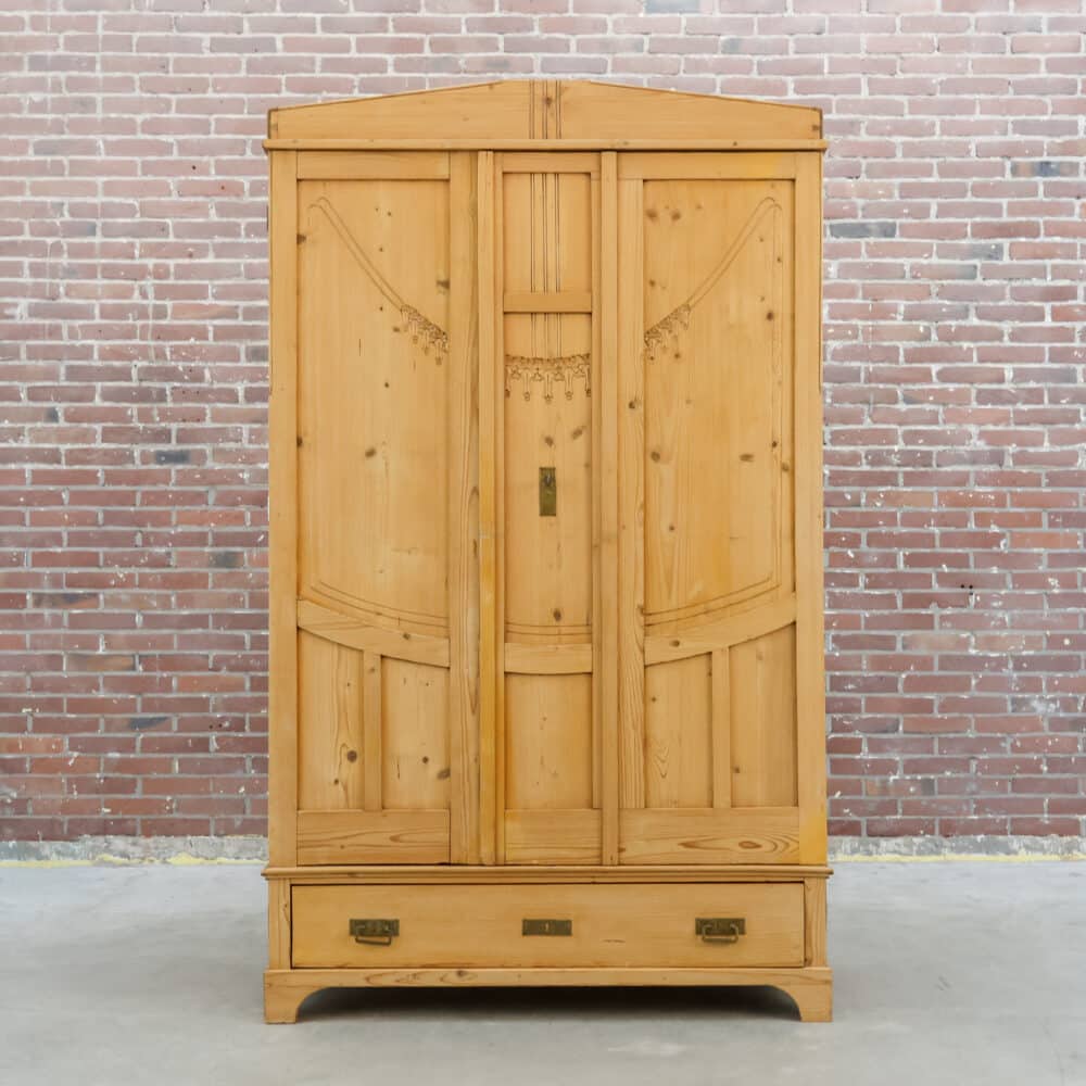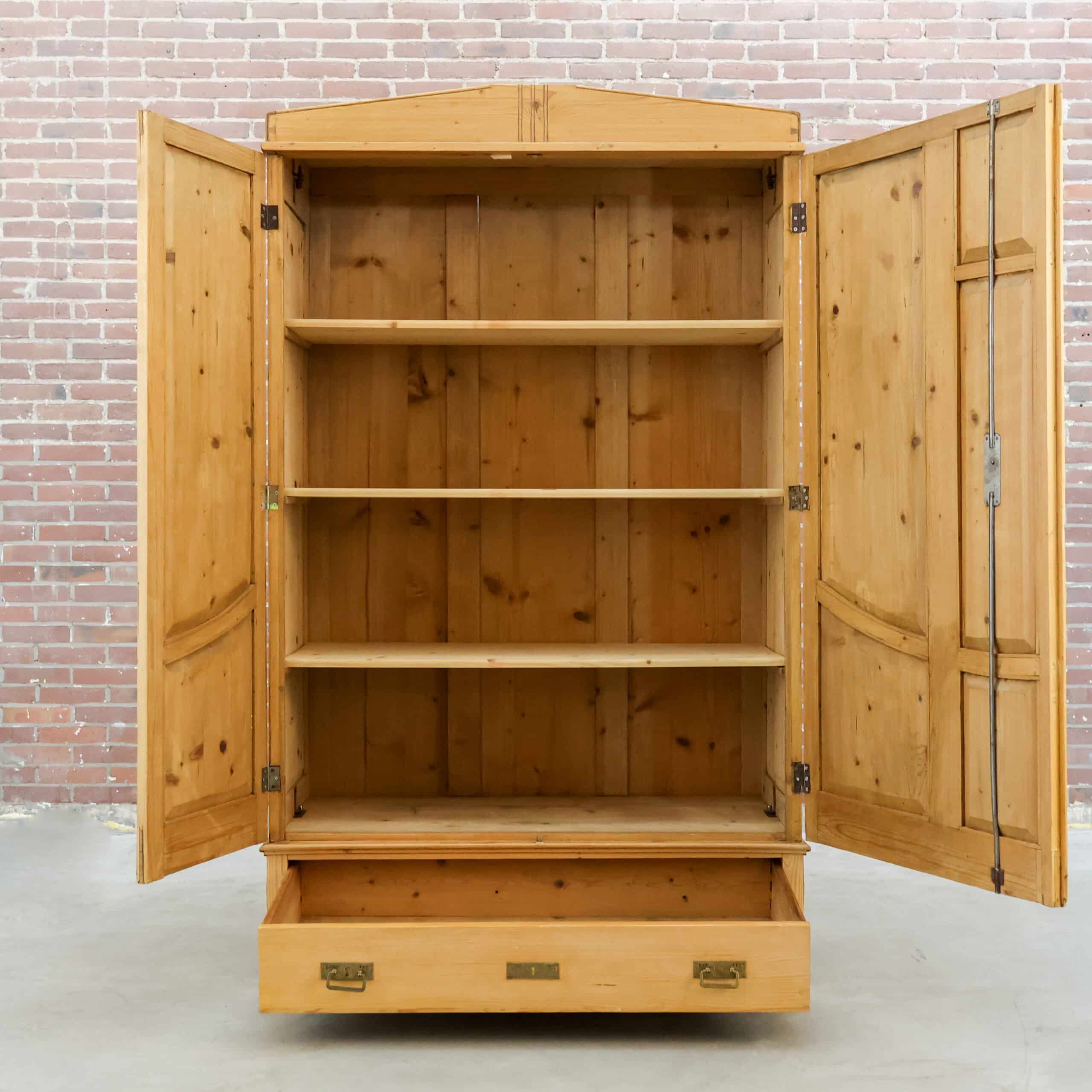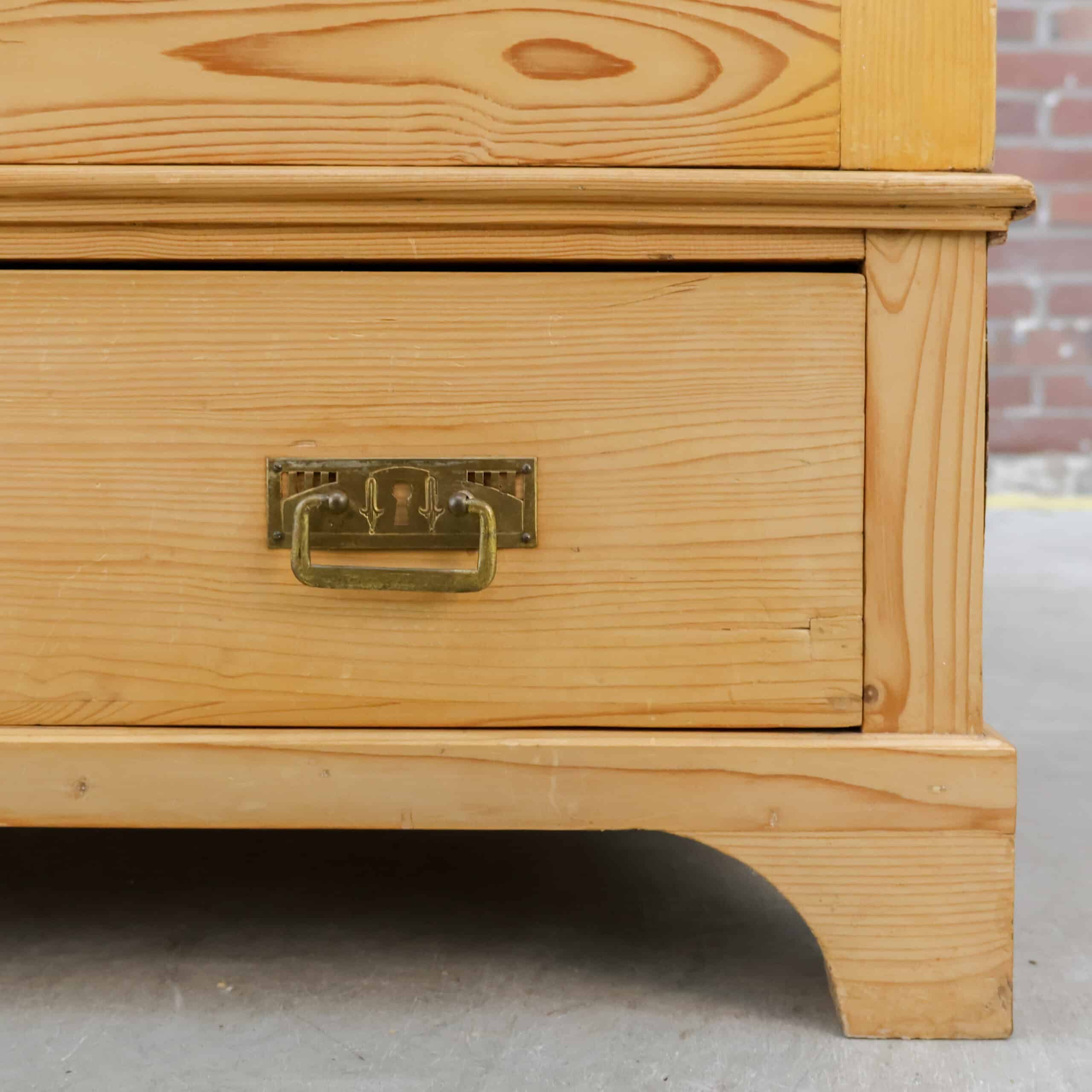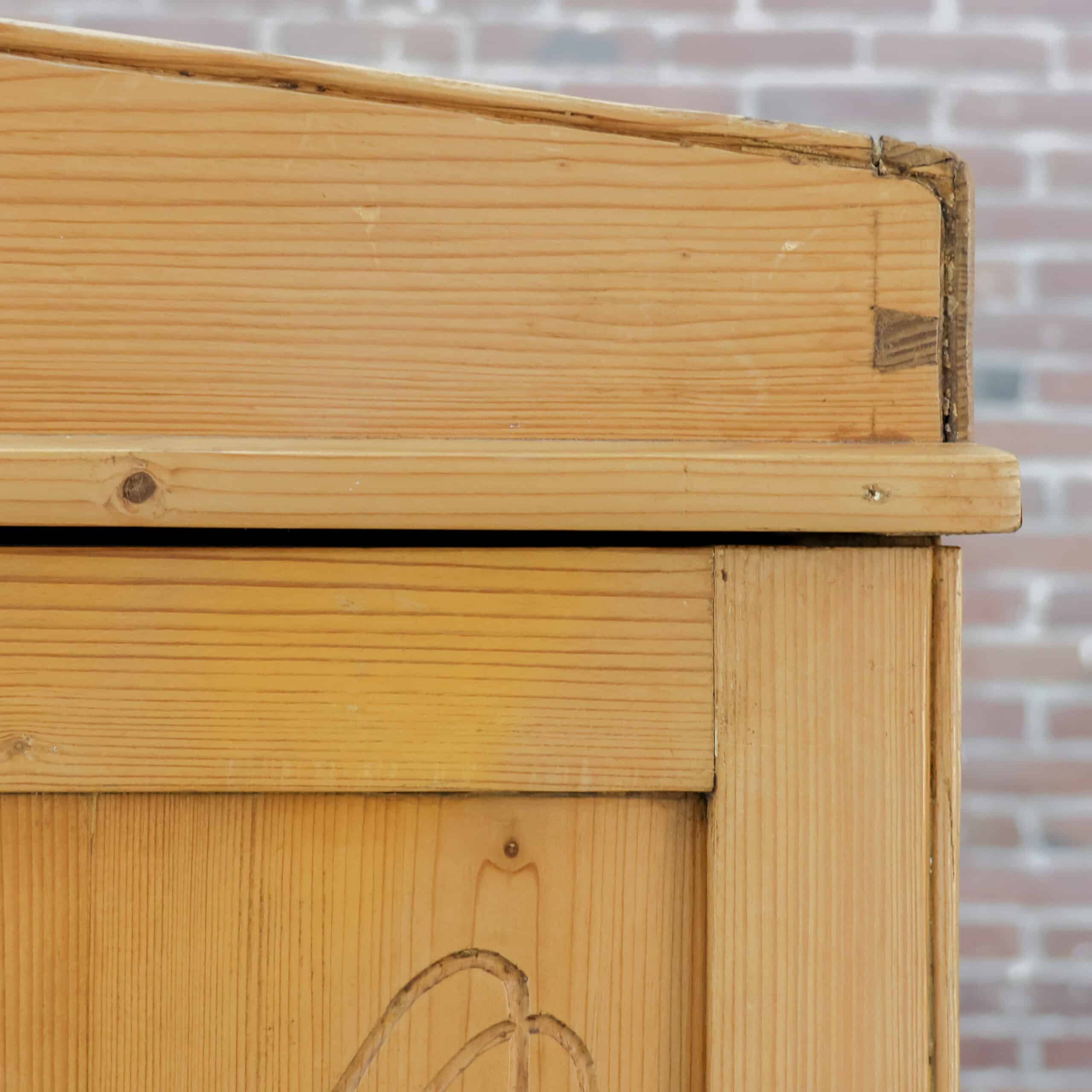 Karaktervolle antieke linnenkast van massief grenenhout. Prachtig verweerd en helemaal klaar voor een tweede leven. Ideaal als kledingkast of sfeermaker in je interieur.