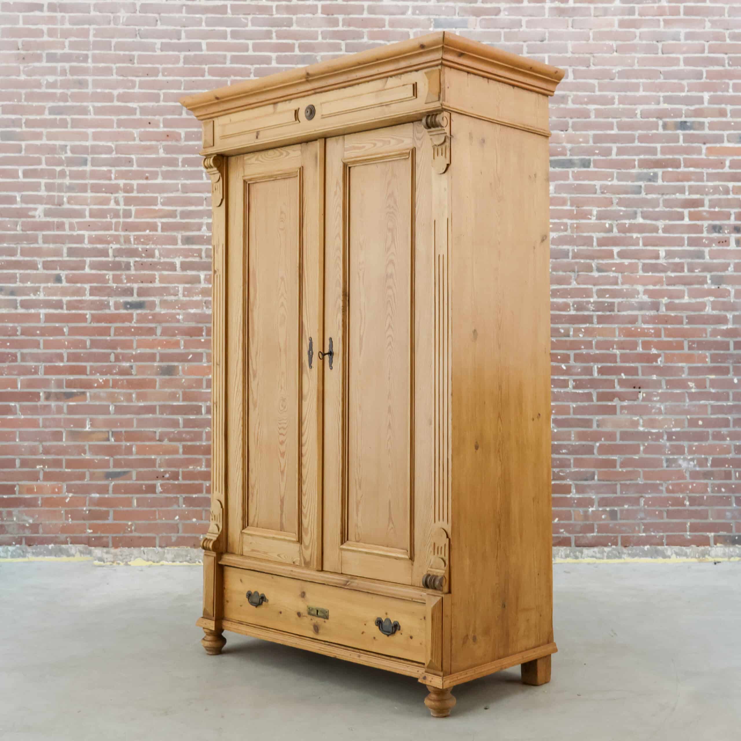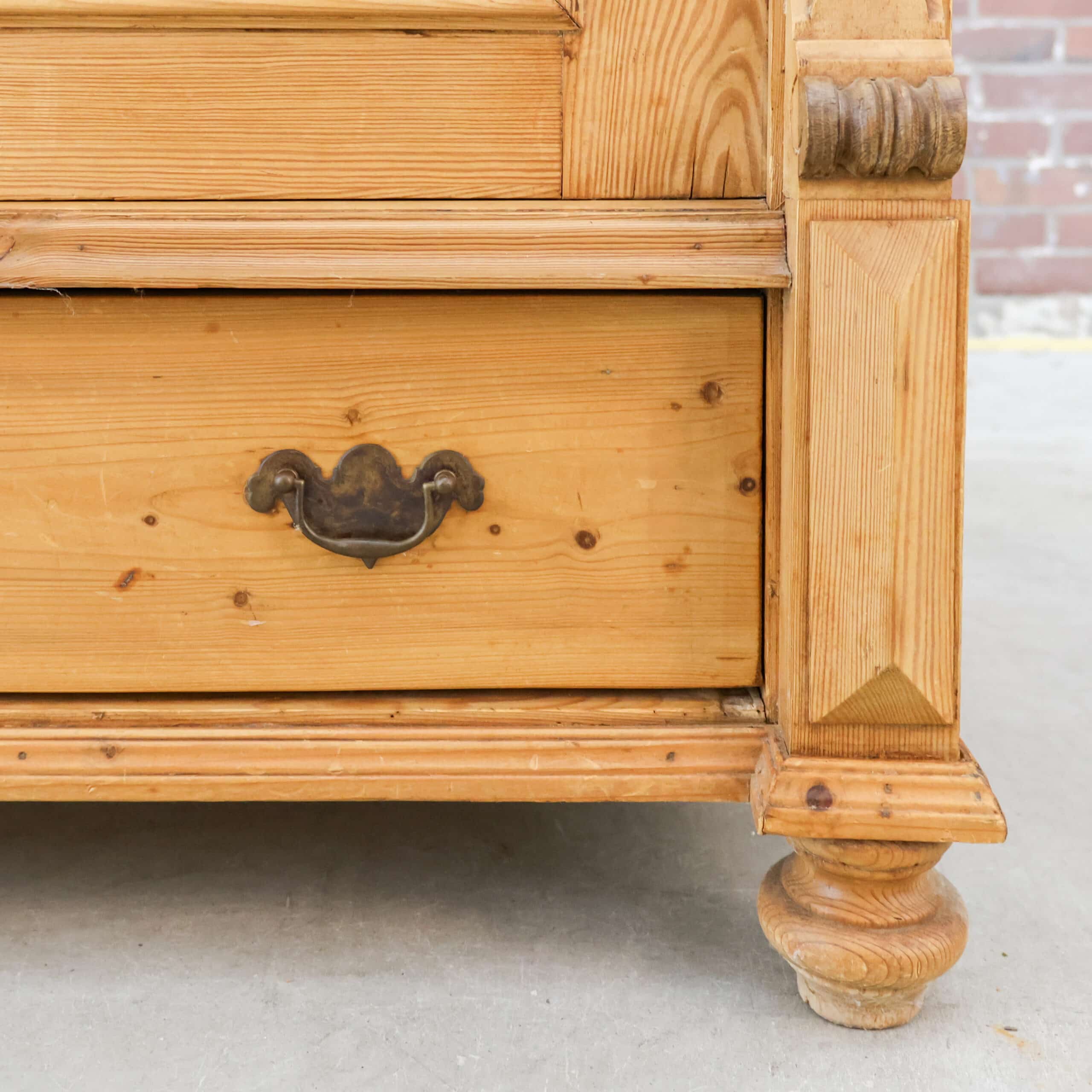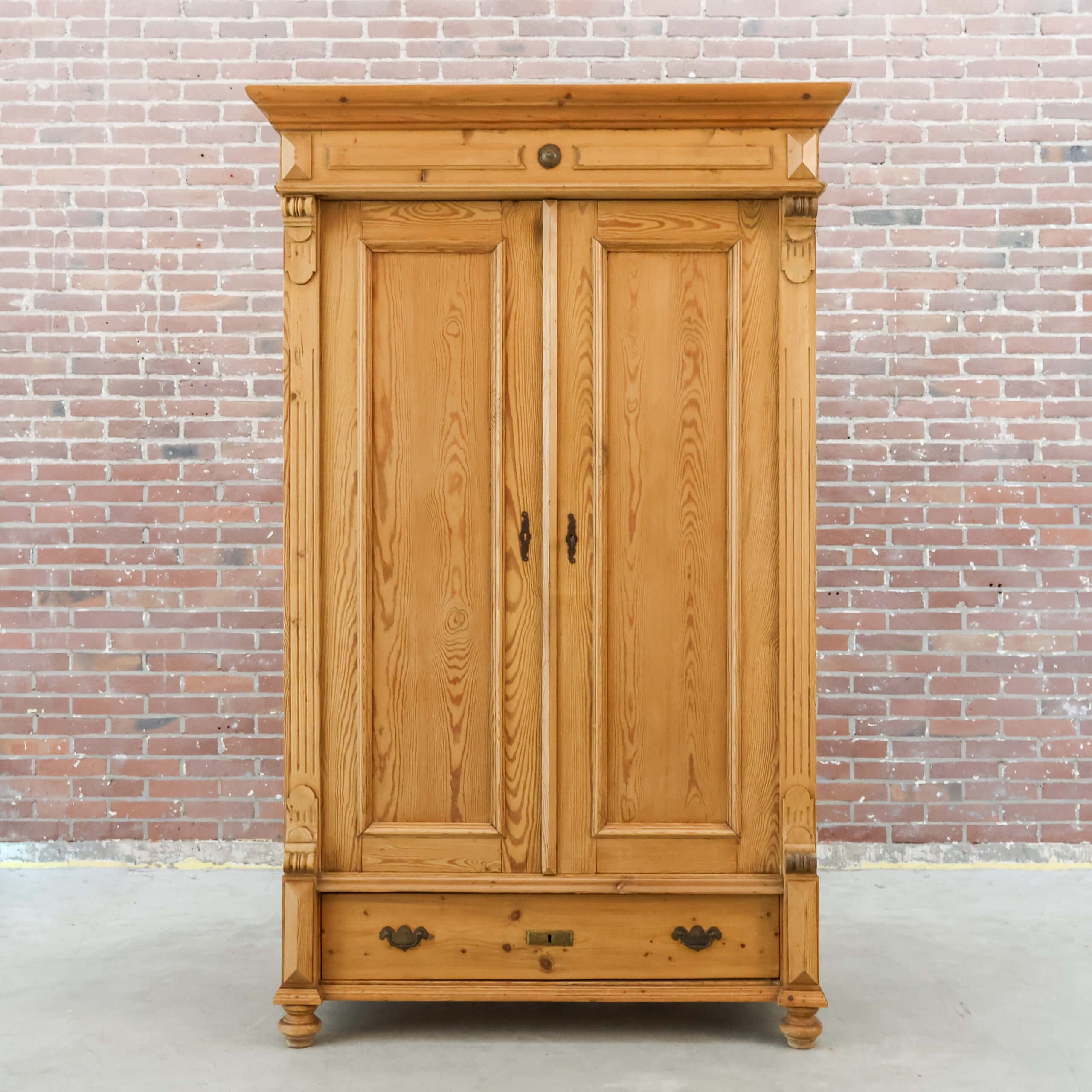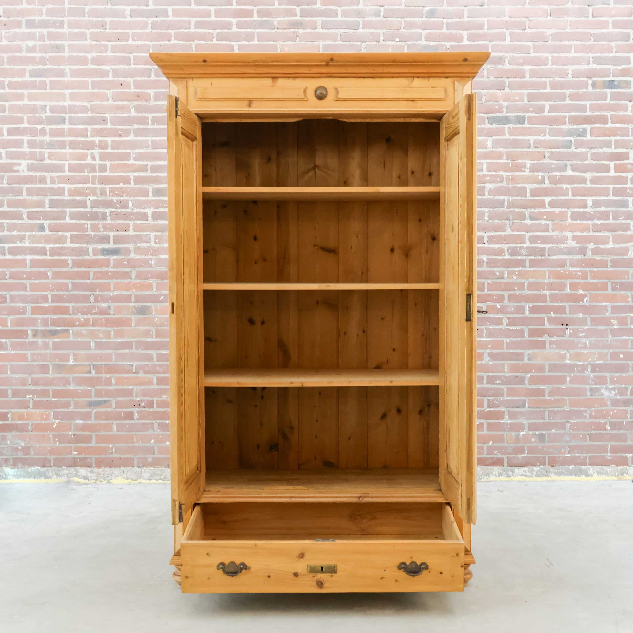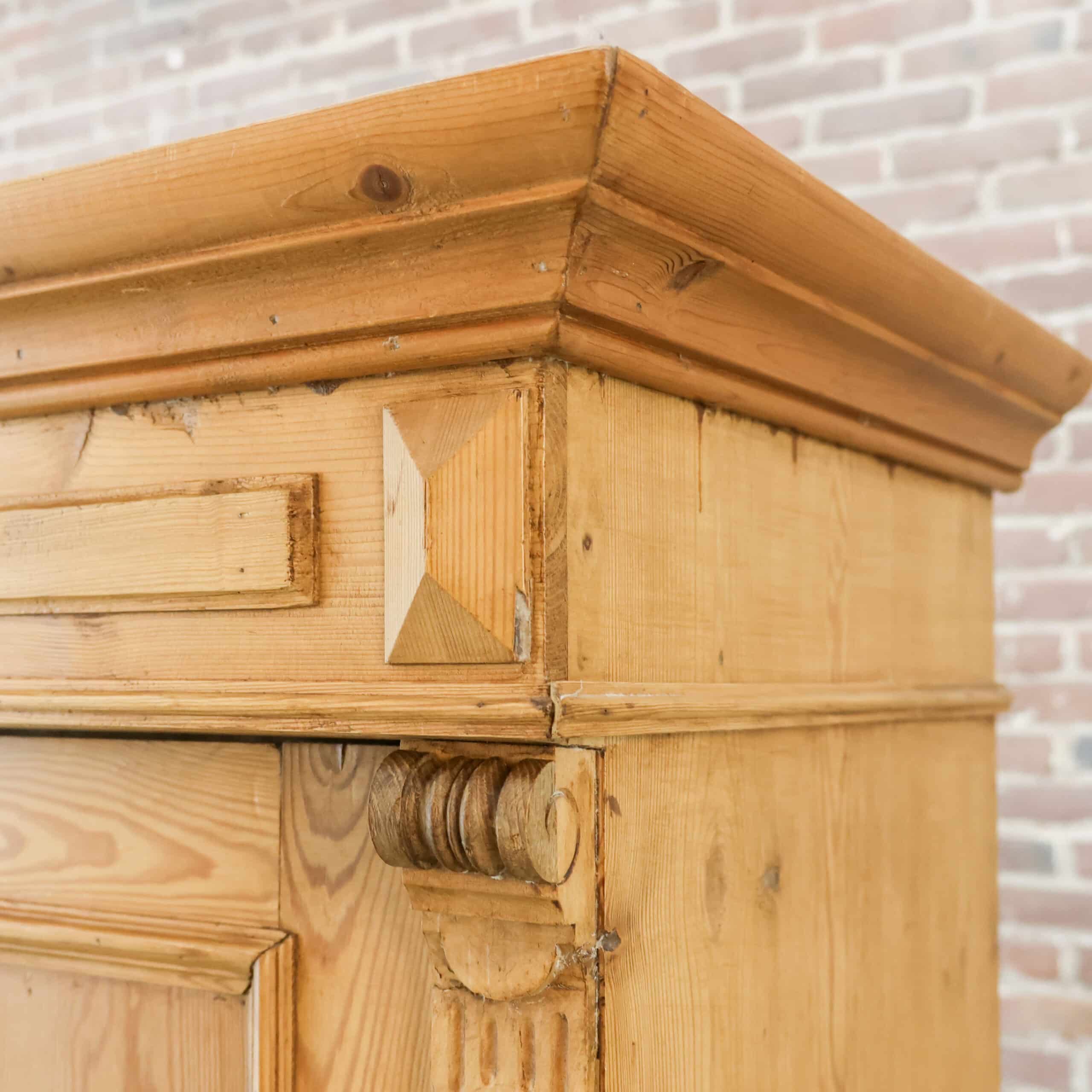 Karaktervolle antieke linnenkast van massief grenenhout. Prachtig verweerd en helemaal klaar voor een tweede leven. Ideaal als kledingkast of sfeermaker in je interieur.