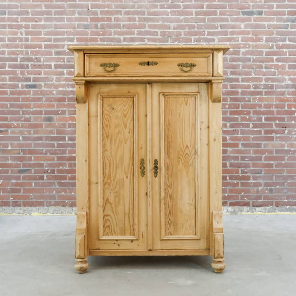 Ze blijven leuk, deze charmante grenen meidenkast! Daarom hebben we er altijd wel een paar in de winkel staan. Dit exemplaar is door de jaren wat doorleefd, maar voor haar leeftijd nog in een nette vintage staat. Fijn formaat voor een kleinere kamer!