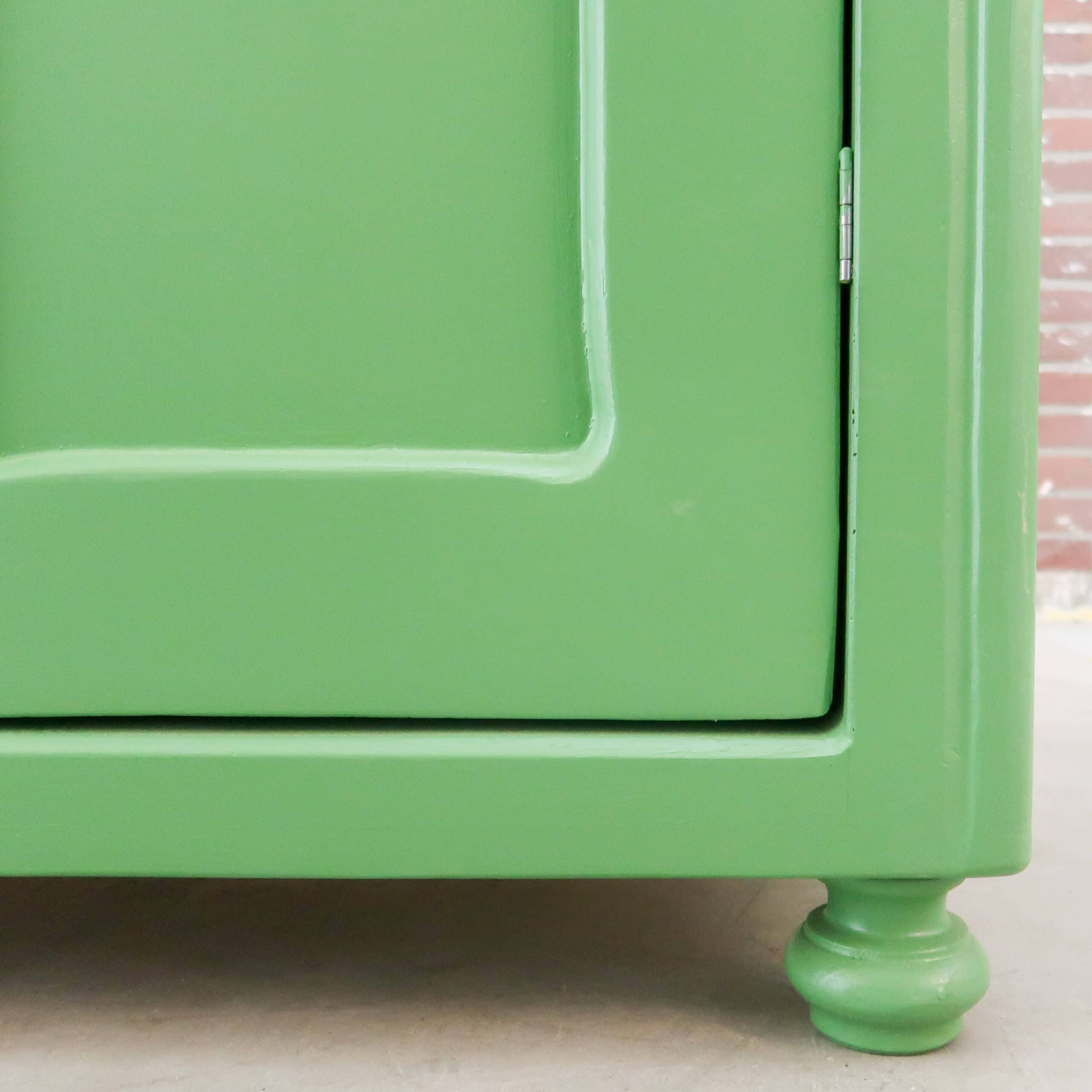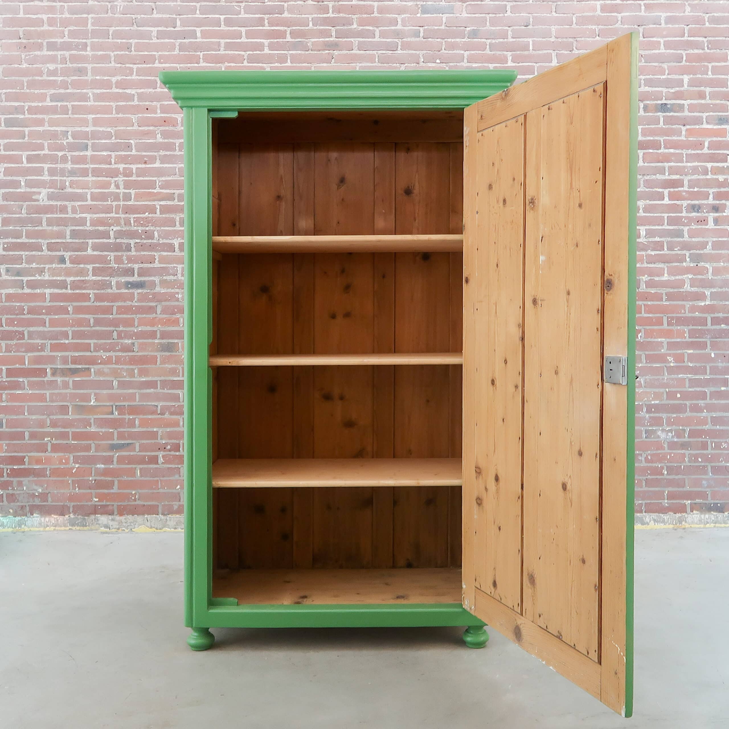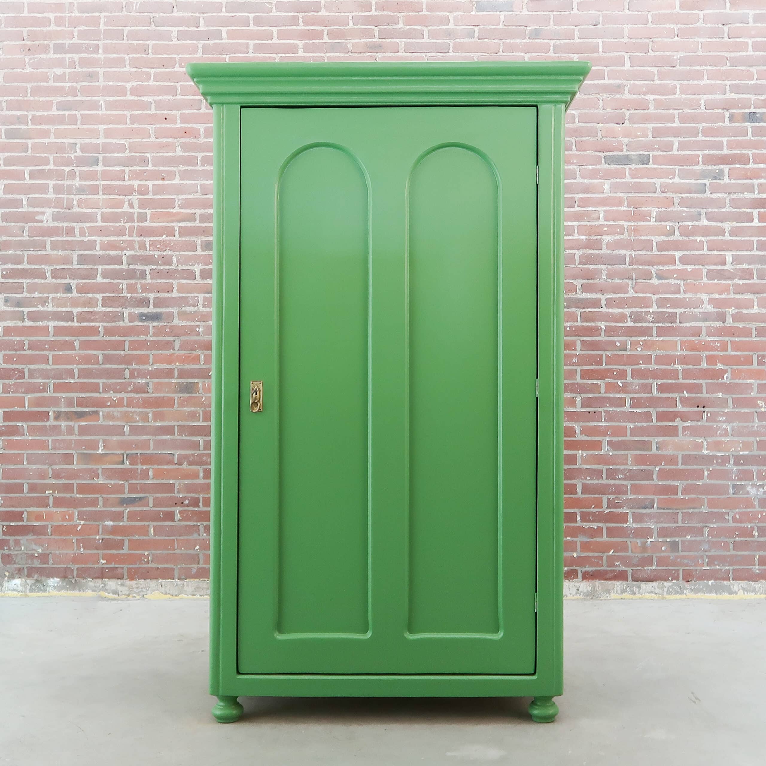 Mooie groene linnenkast uit Hongarije! We hebben haar in eigen werkplaats gemaakt, met het hout van oude kasten die we niet meer konden redden. Zo haal je dus een heel uniek én duurzaam exemplaar in huis!