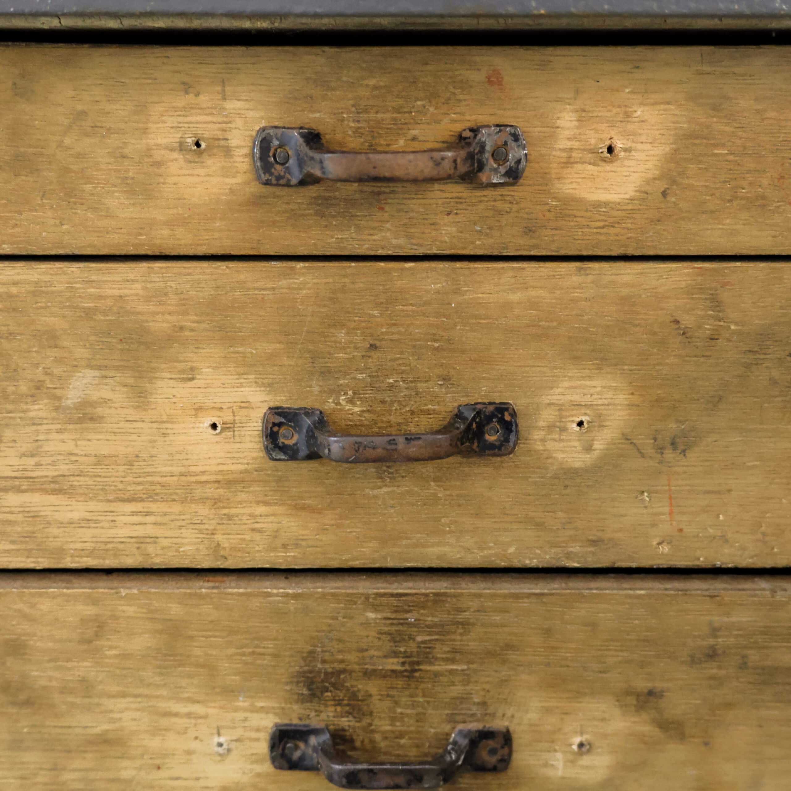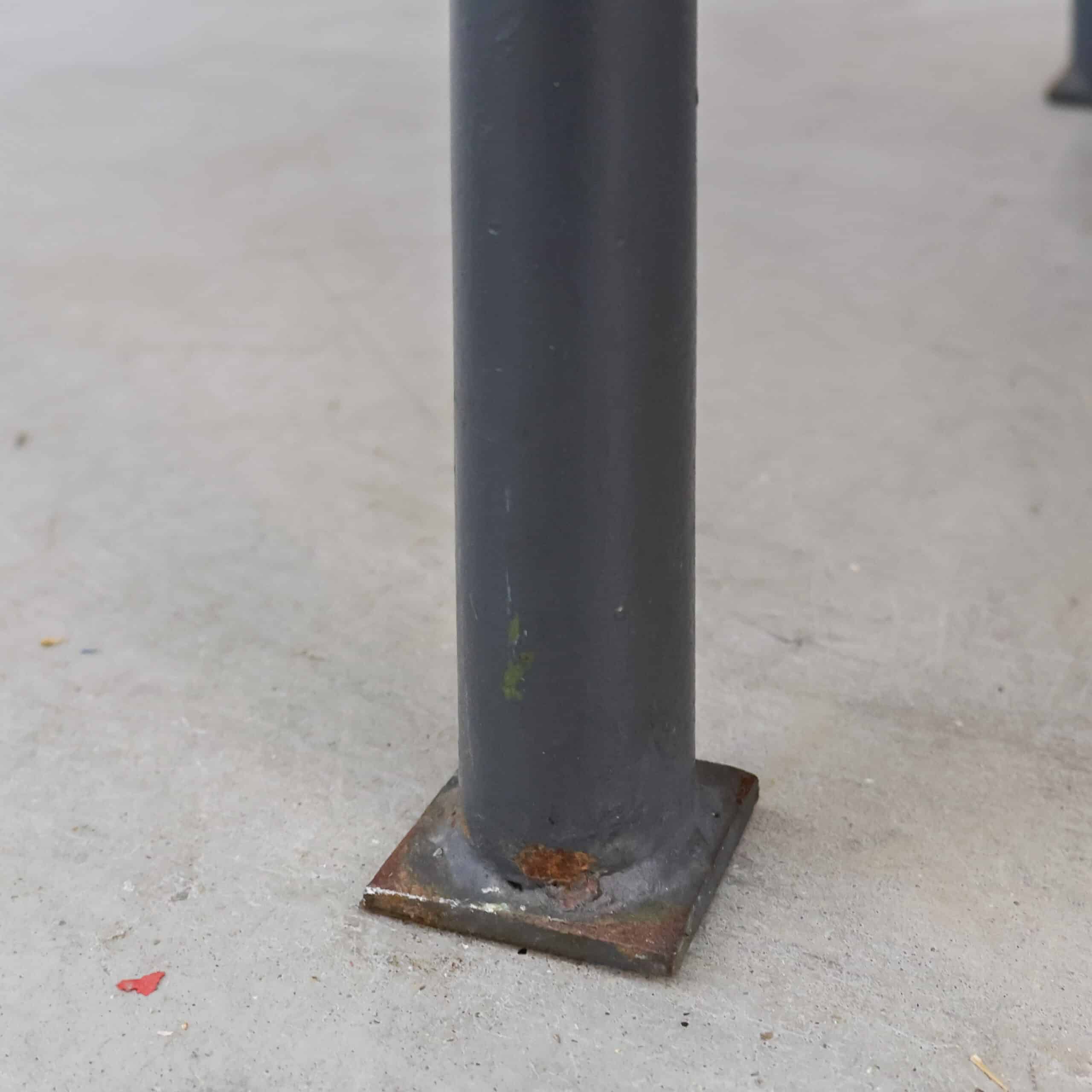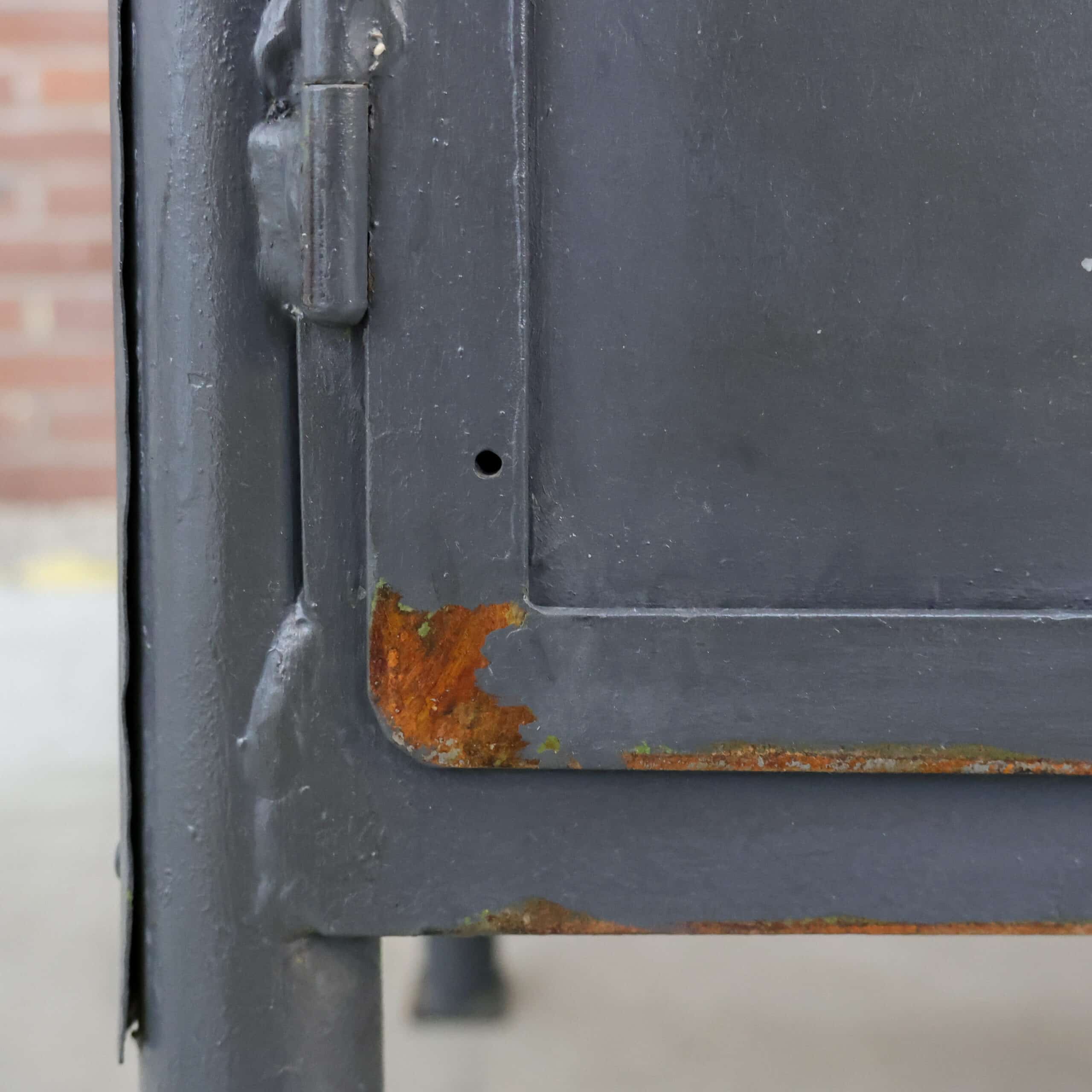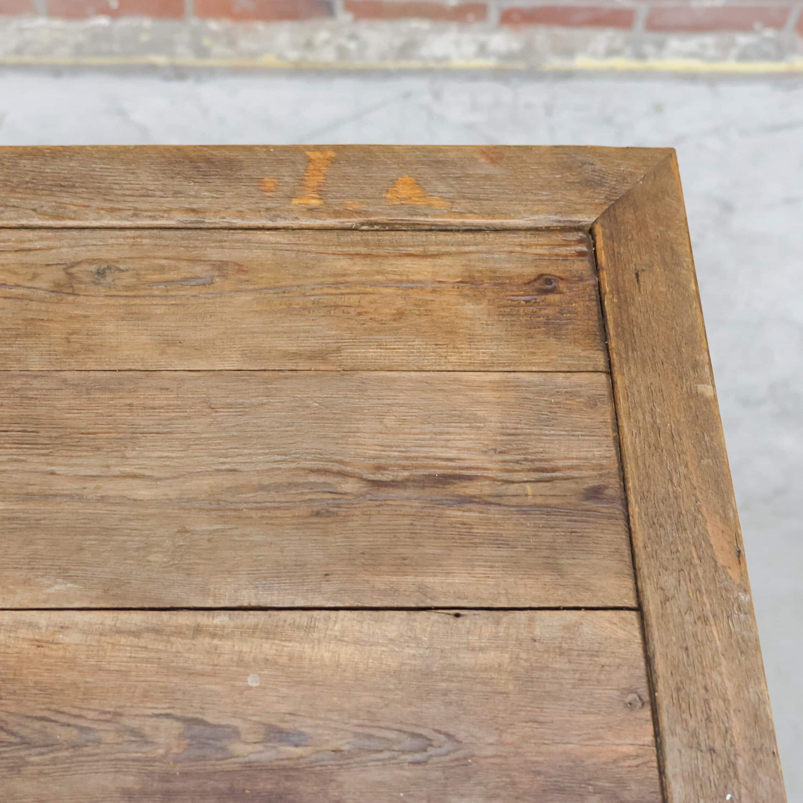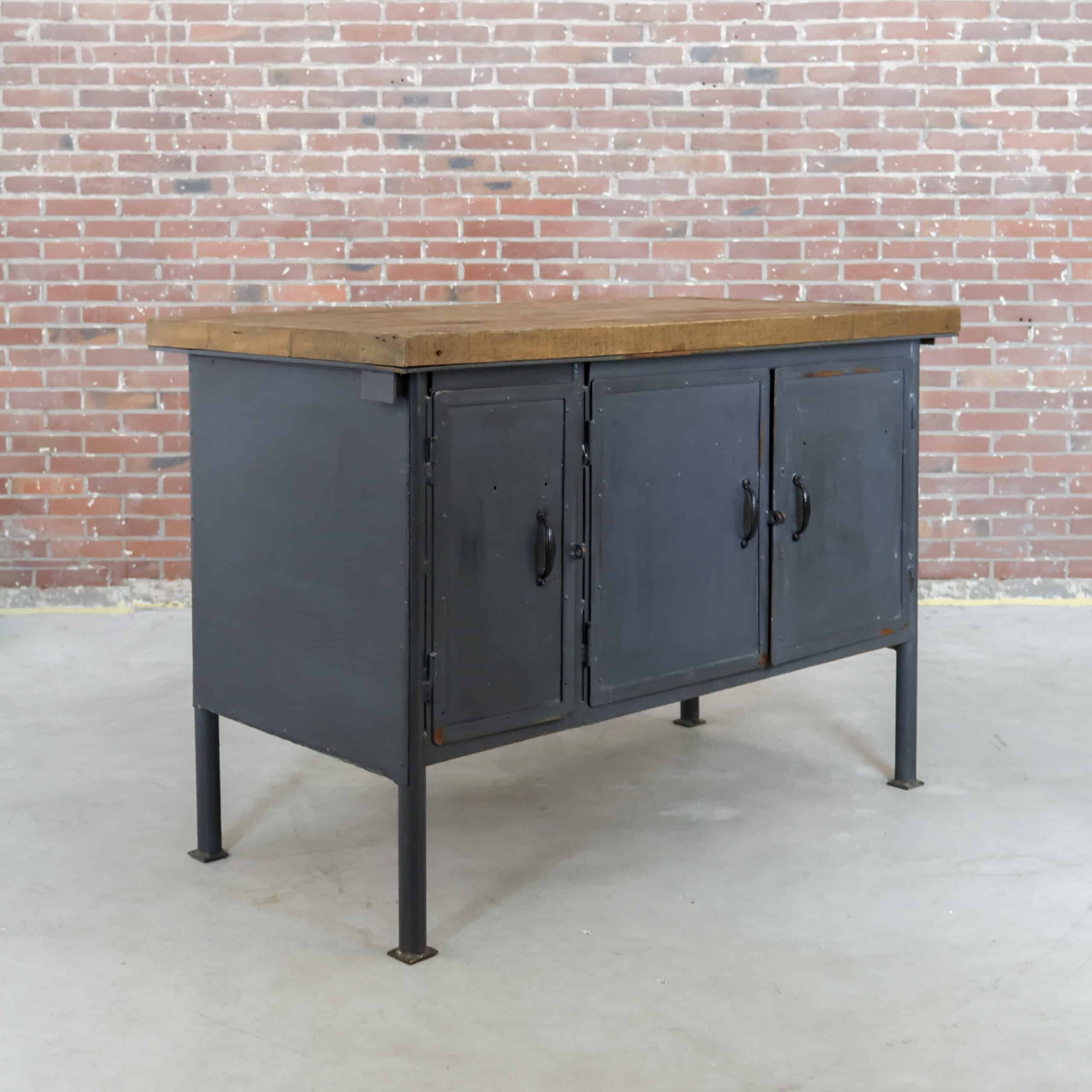 Deze industriële werkbank heeft een robuust metalen onderstel en een mooi doorleefd houten blad, precies zoals je het wil zien bij een echte old-school fabrieks werktafel. De grijze lak toont gebruikssporen en patina, wat hem die perfecte vintage uitstraling geeft. Een karaktervol en stijlvol meubel dat geweldig werkt als keukeneiland, dressoir, plantentafel of stoere side table.