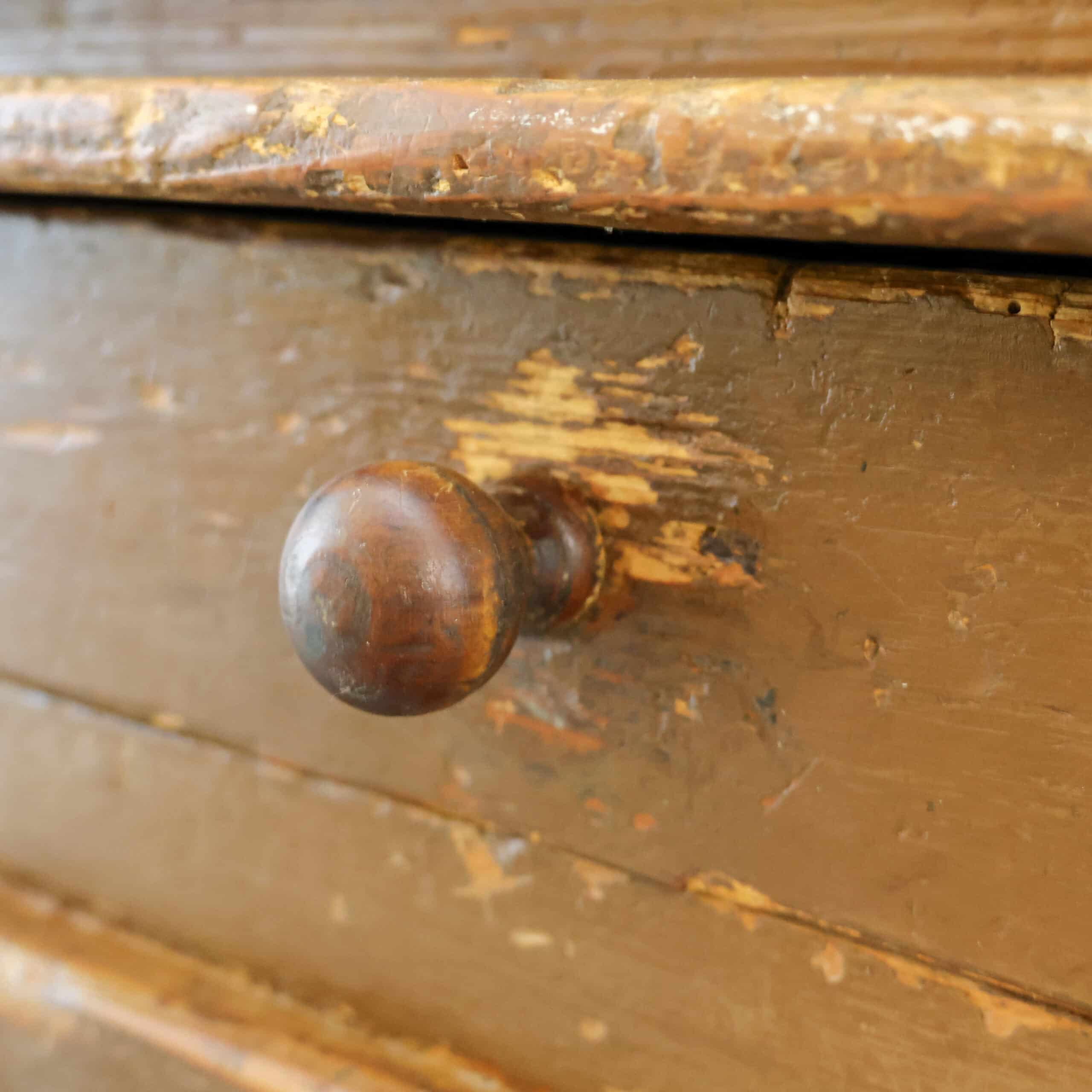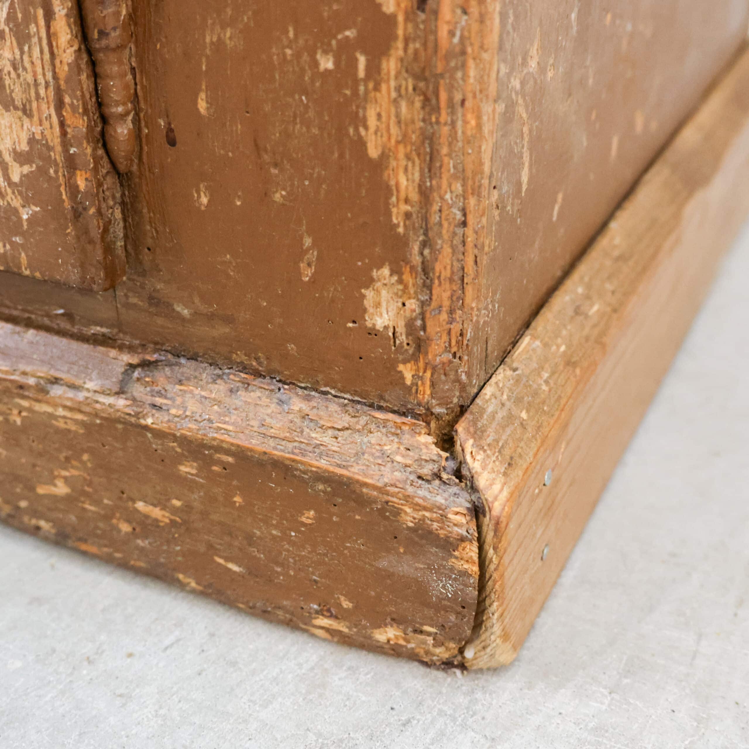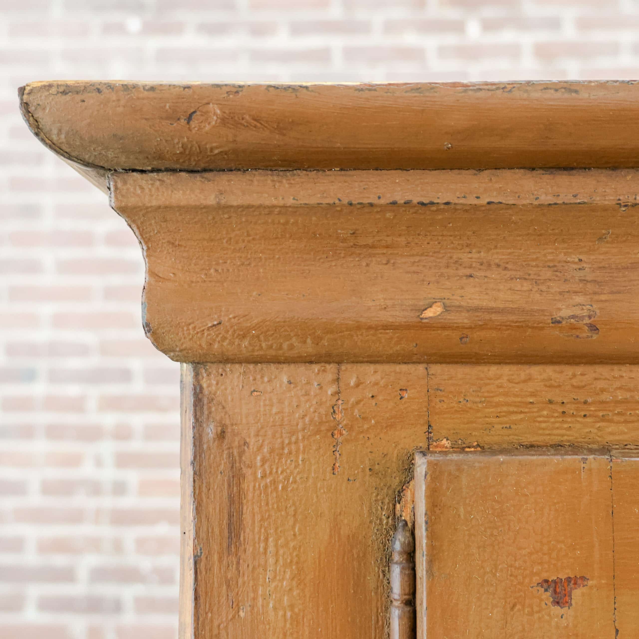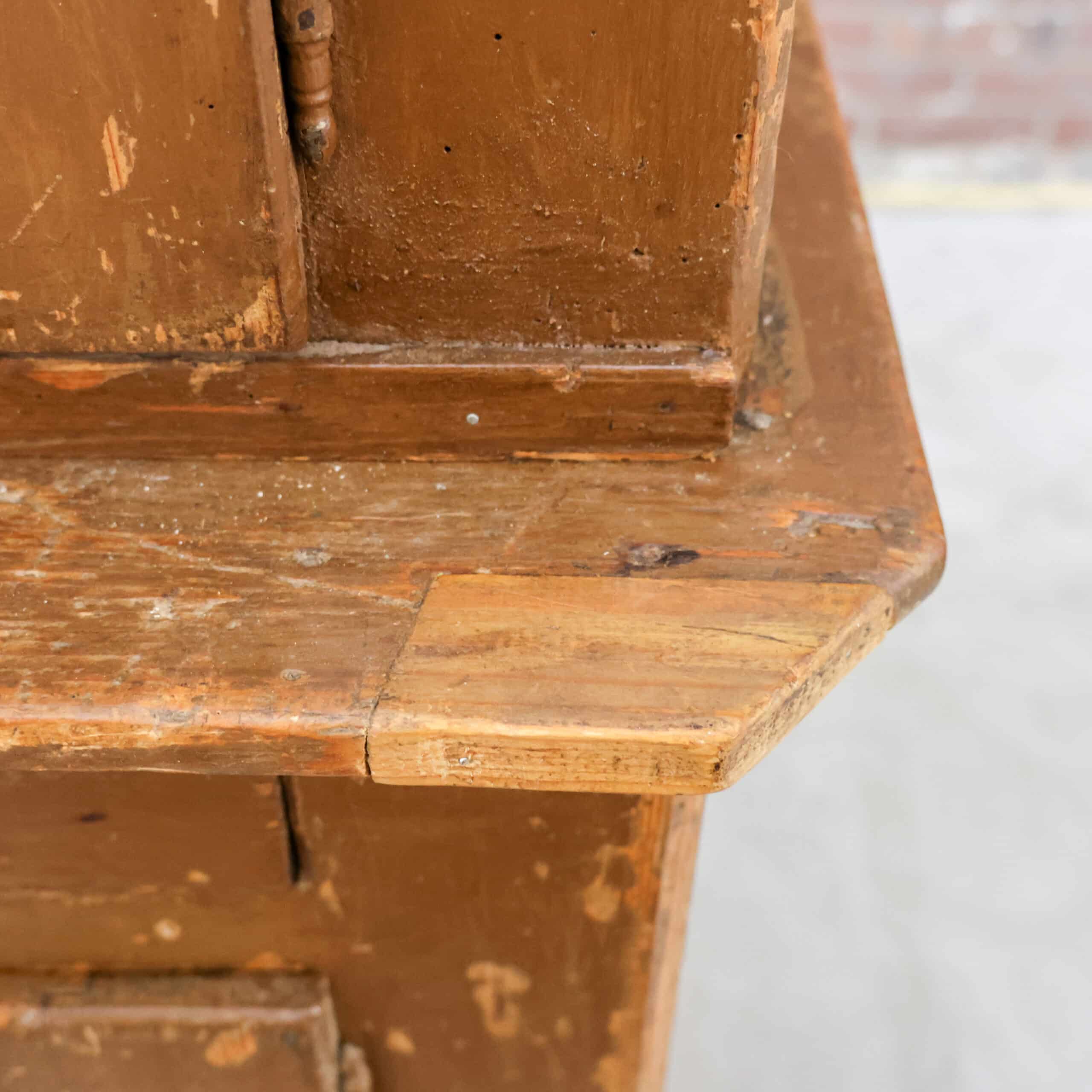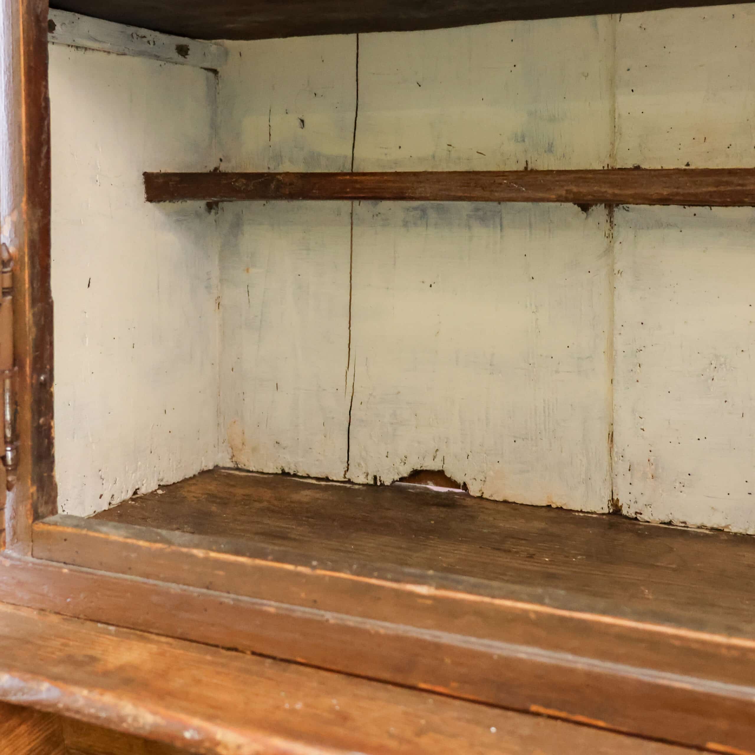 Authentieke landelijke buffetkast uit circa 1900, met een prachtige doorleefde uitstraling en originele details zoals de ijzeren sluiting en paneeldeuren. De kast heeft een warme, geleefde patina die perfect past binnen een wabi-sabi interieur waar karakter en geschiedenis zichtbaar mogen blijven. Binnenin praktische planken en lades, ideaal voor servies, linnengoed of als sfeervolle opbergkast.