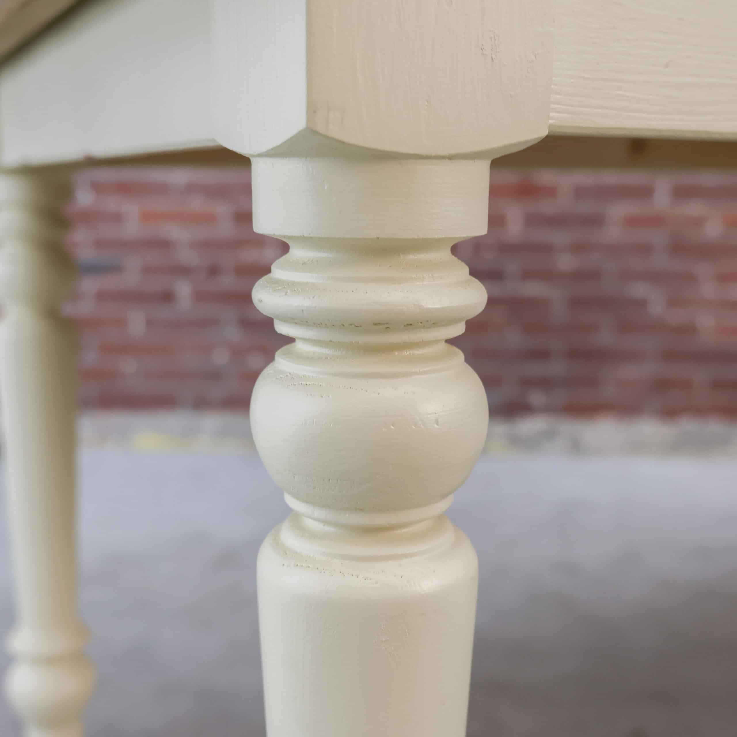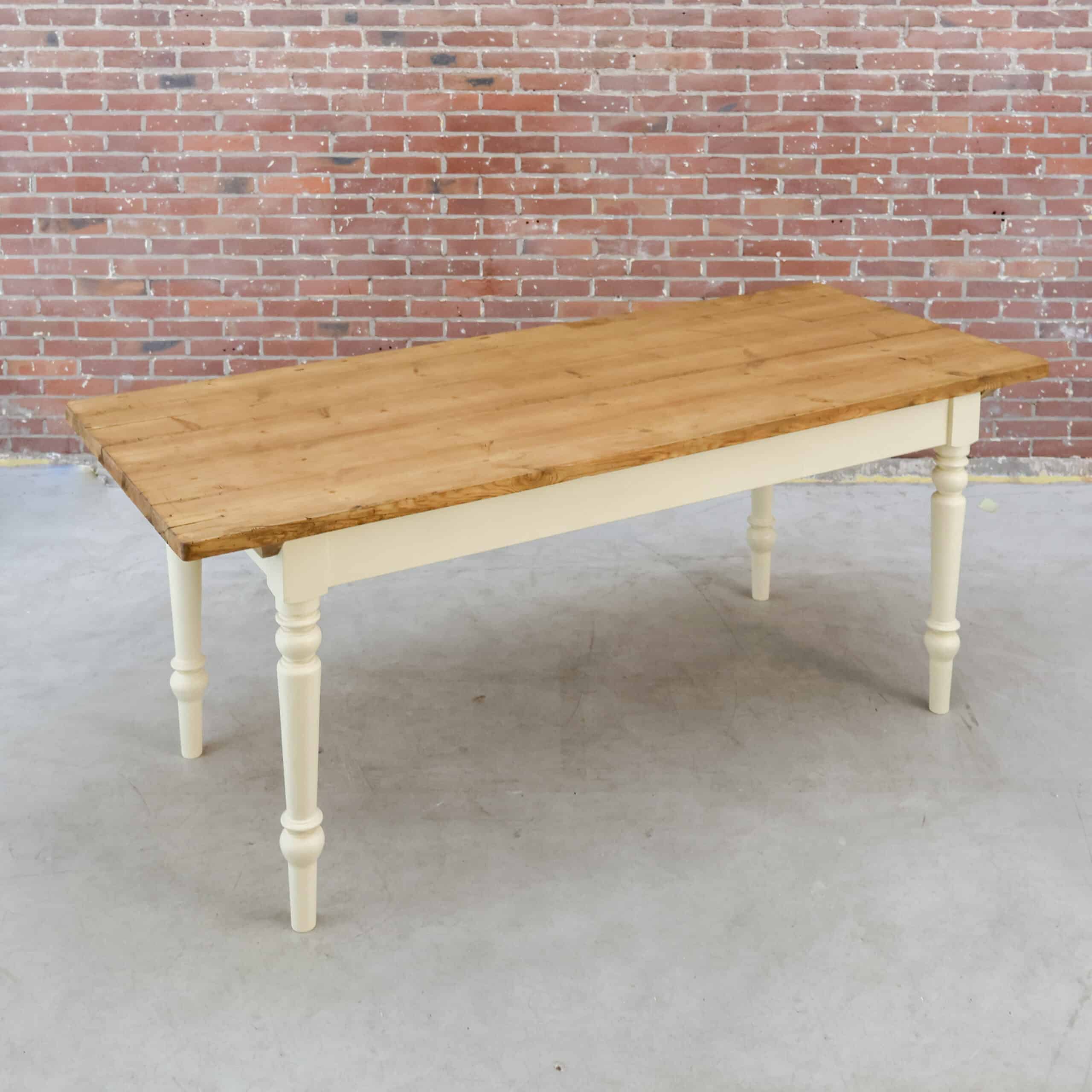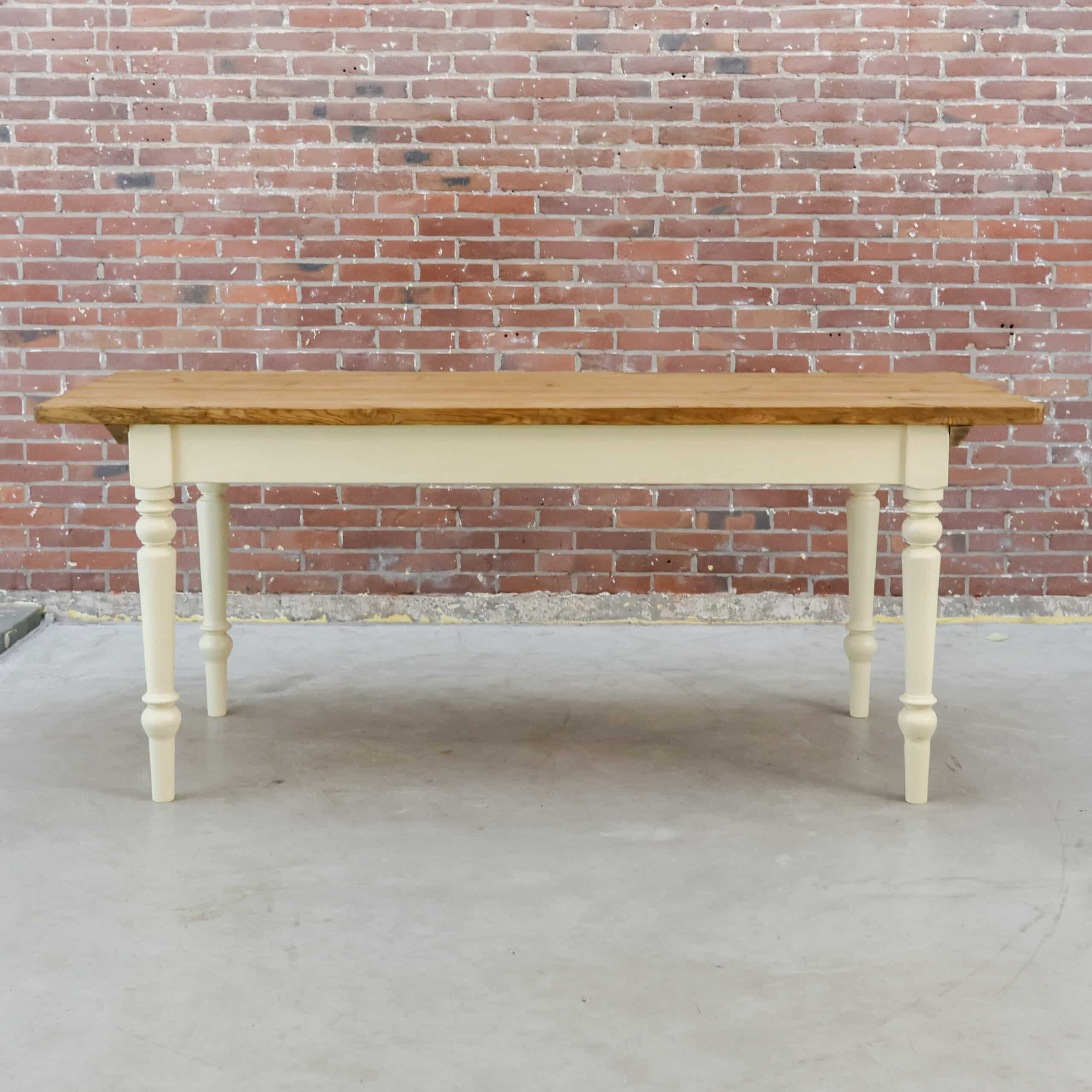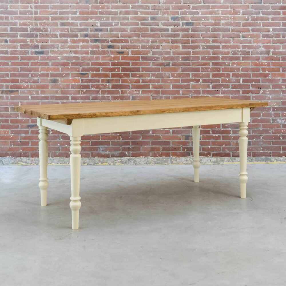 Sfeervolle landelijke eettafel met een licht houten onderstel en een oud houten blad. Perfect als keukentafel, werkplek of als pronkstuk in een landelijk interieur. Stevig, uniek en met een verhaal.