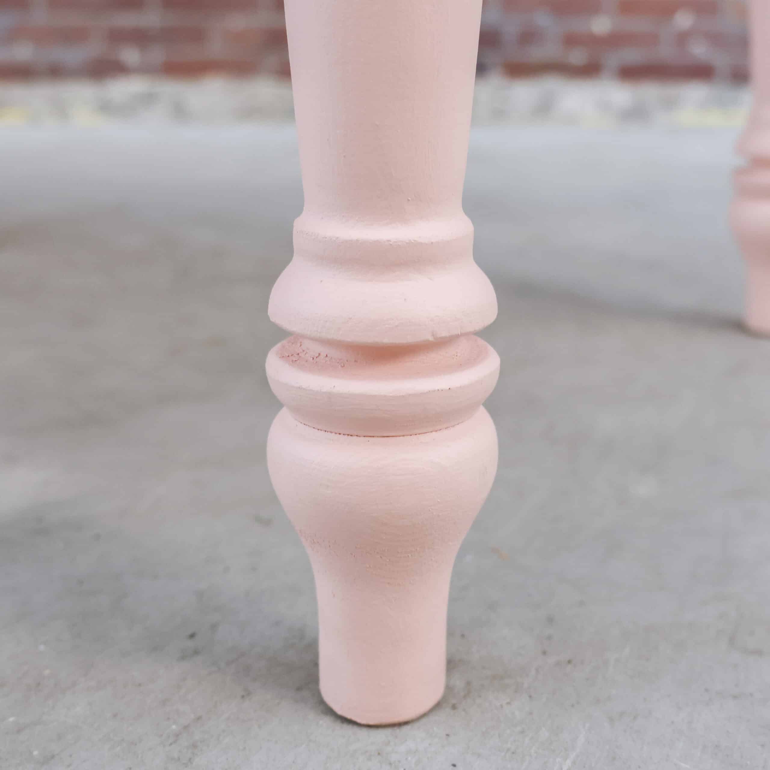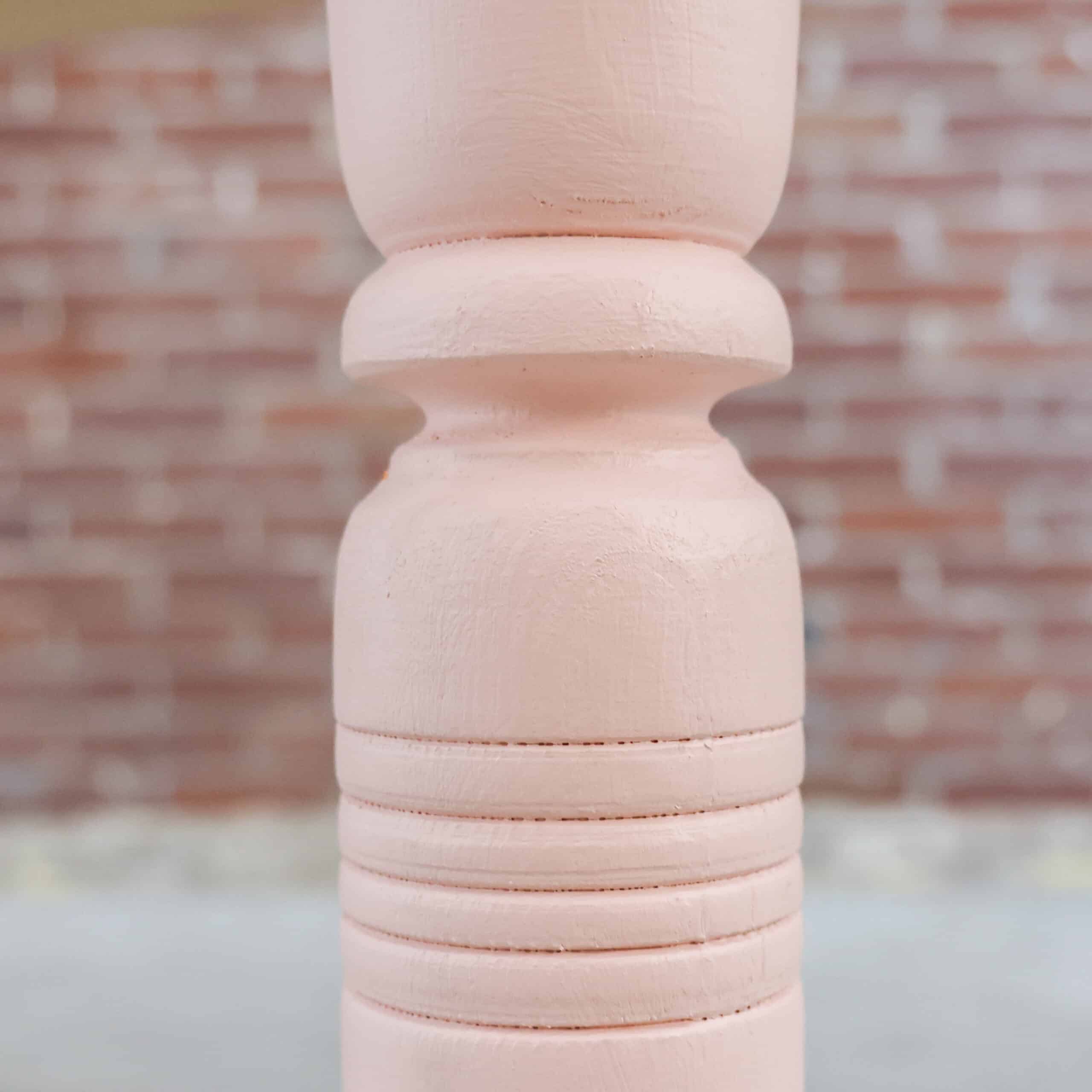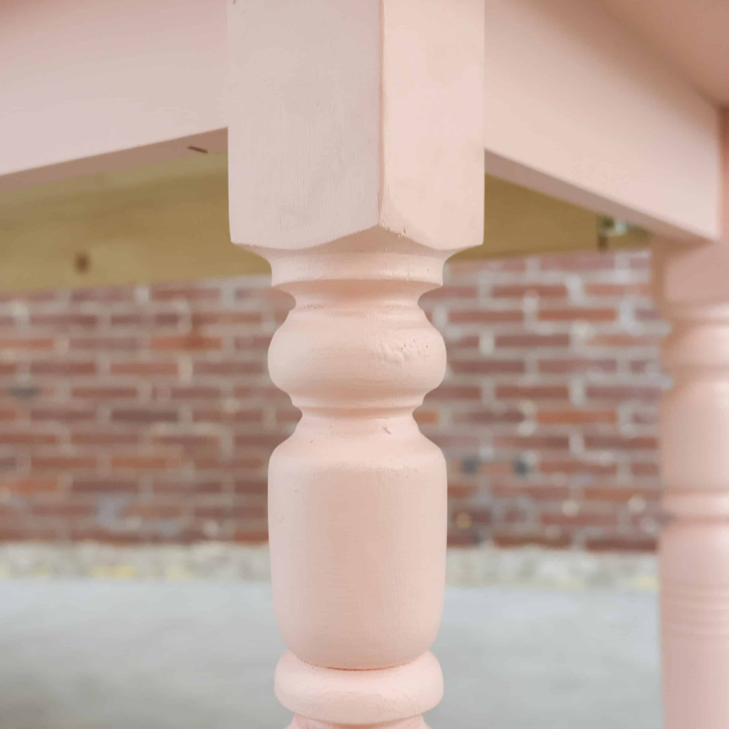 Sfeervolle landelijke eettafel met een licht roze houten onderstel en een houten blad. Perfect als keukentafel, werkplek of als pronkstuk in een landelijk interieur. Stevig, uniek en met een verhaal.