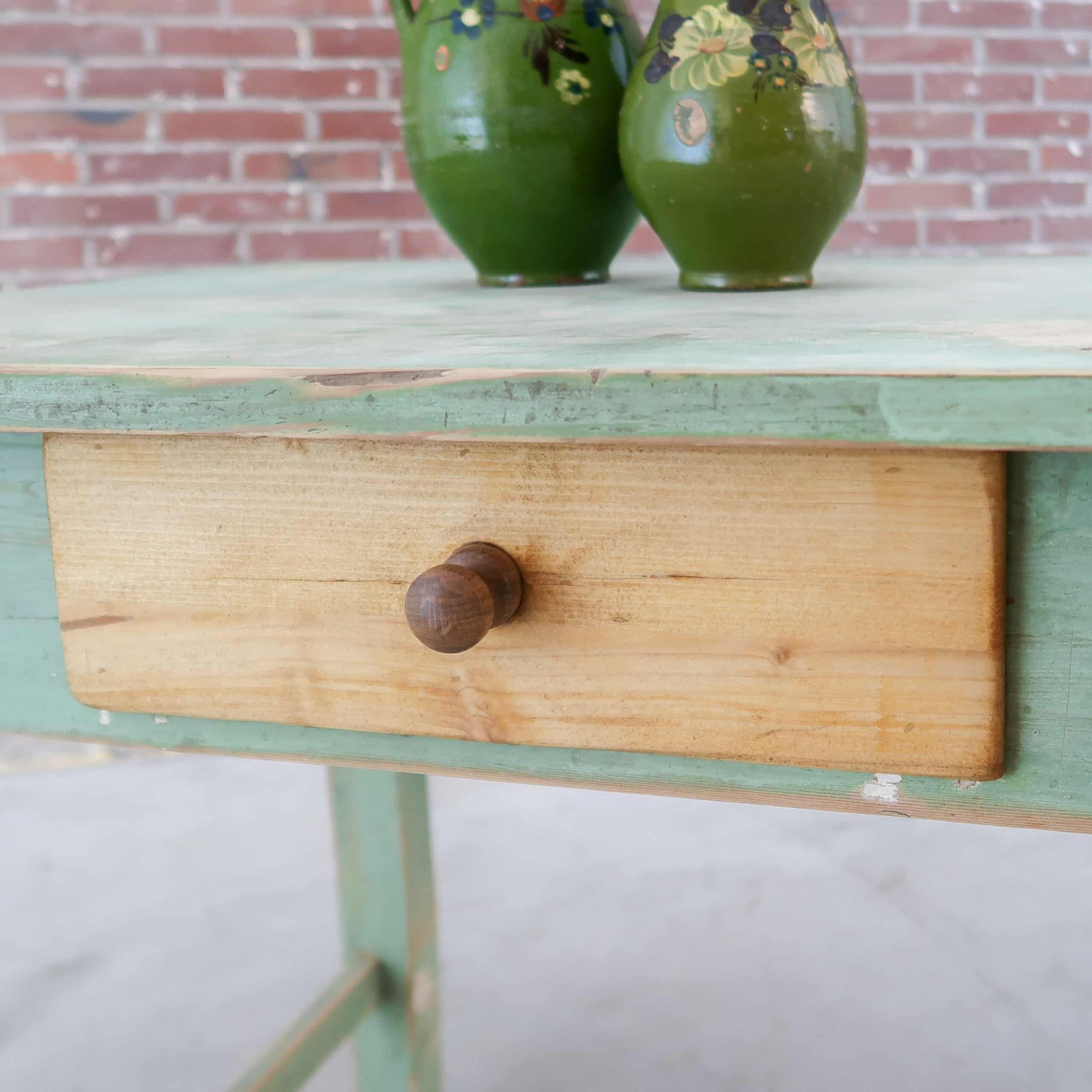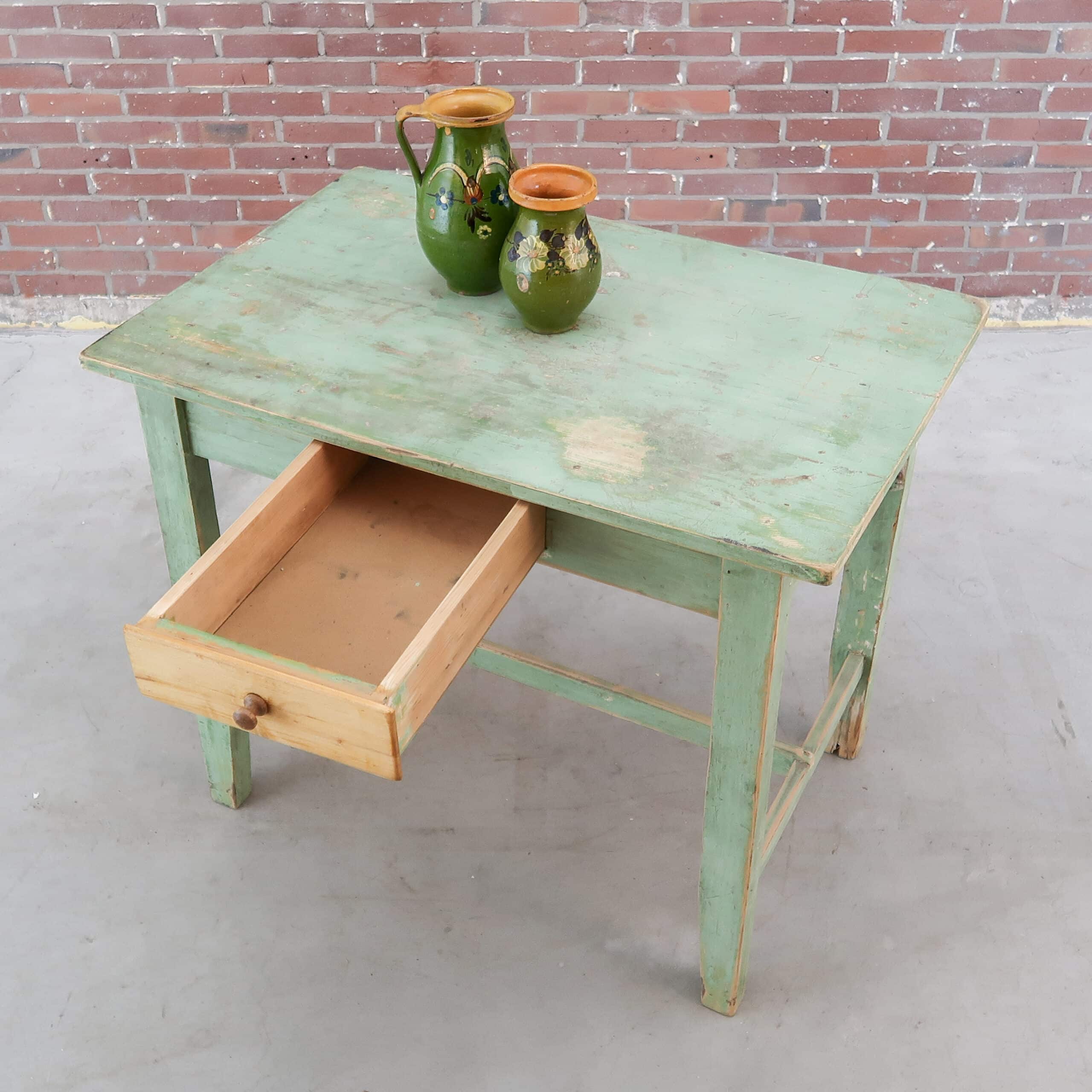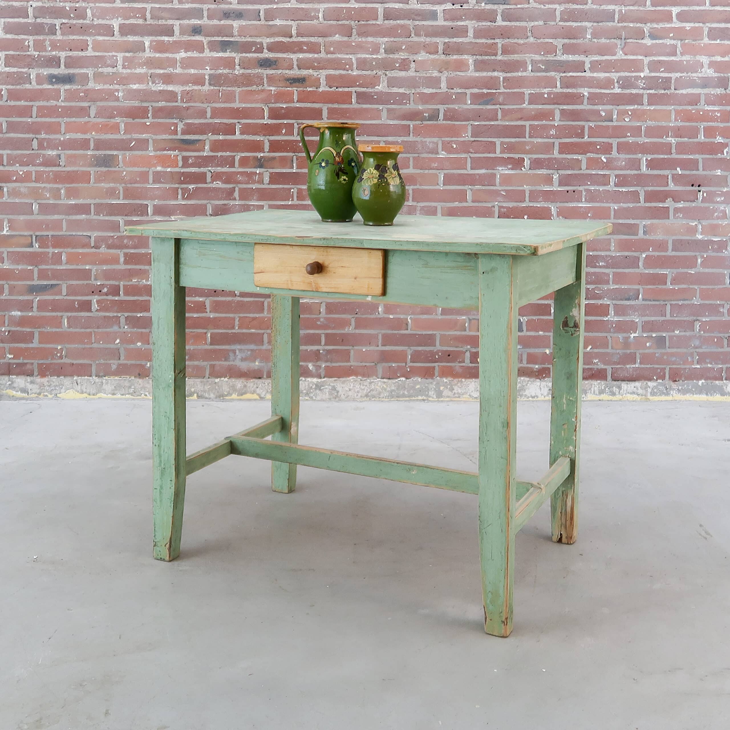 Mooi, dit landelijke tafeltje! Dit formaat is perfect voor een bescheiden keuken of eethoek. Het is ook zeer geschikt als bureau.
