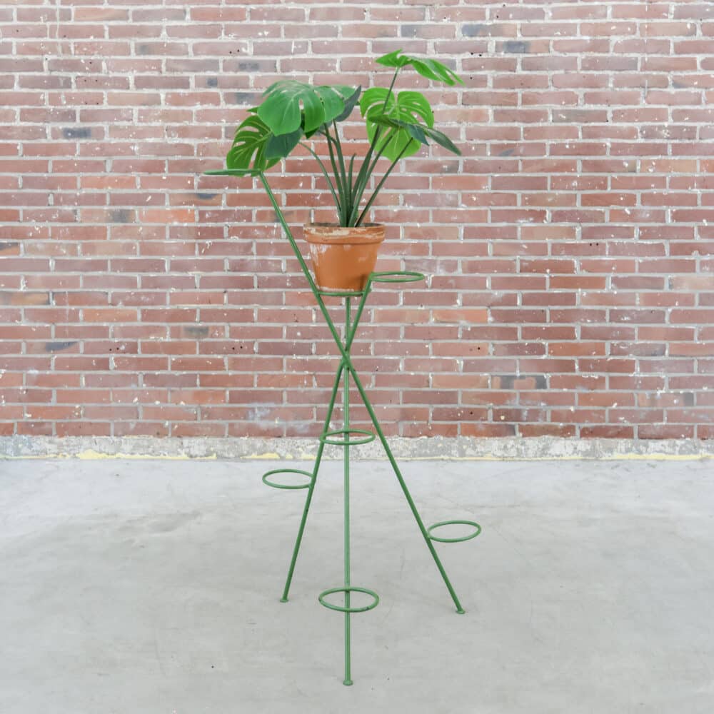 We hebben altijd volop Hongaarse plantenrekken en tafels staan, in allerlei kleuren & maten! Dit exemplaar is van metaal en heeft een groene kleur. Deze heeft plek voor 8 planten, echt een beauty!