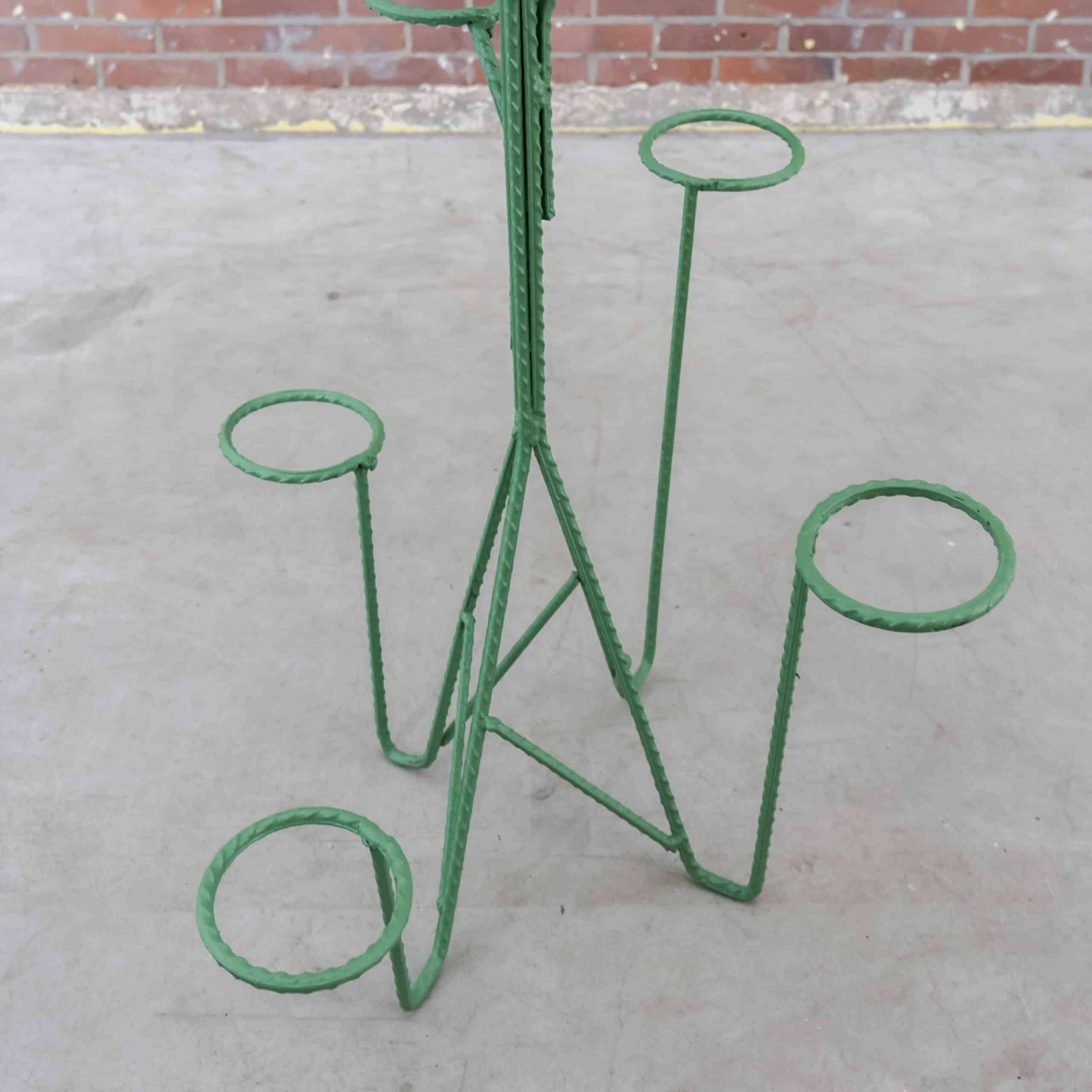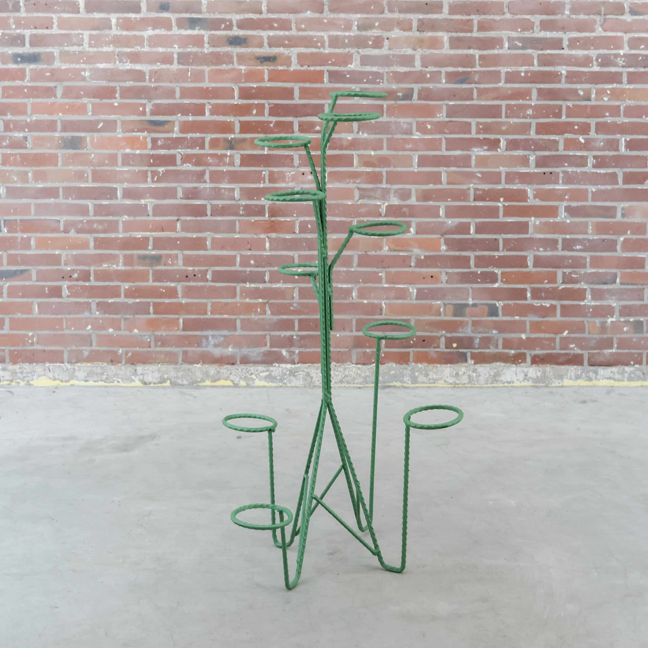 We hebben altijd volop Hongaarse plantenrekken en tafels staan, in allerlei kleuren & maten! Dit exemplaar is van metaal en heeft een fijne groene kleur. Deze heeft plek voor 10 plantjes, echt een beauty!