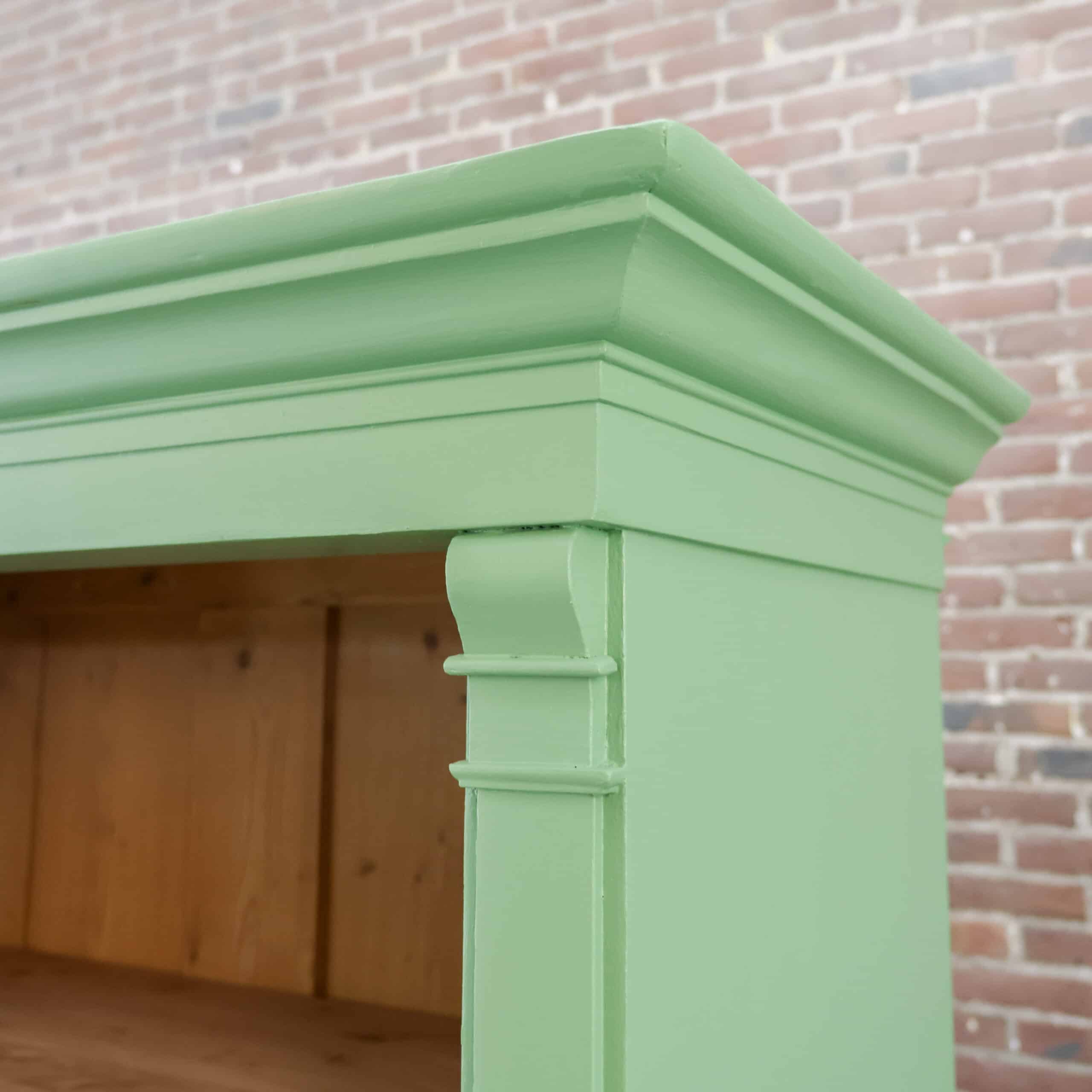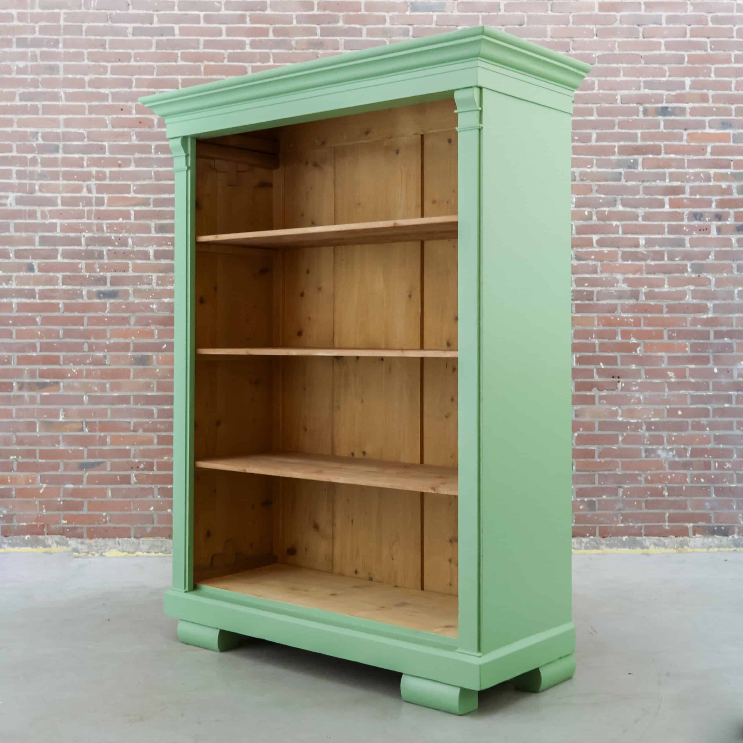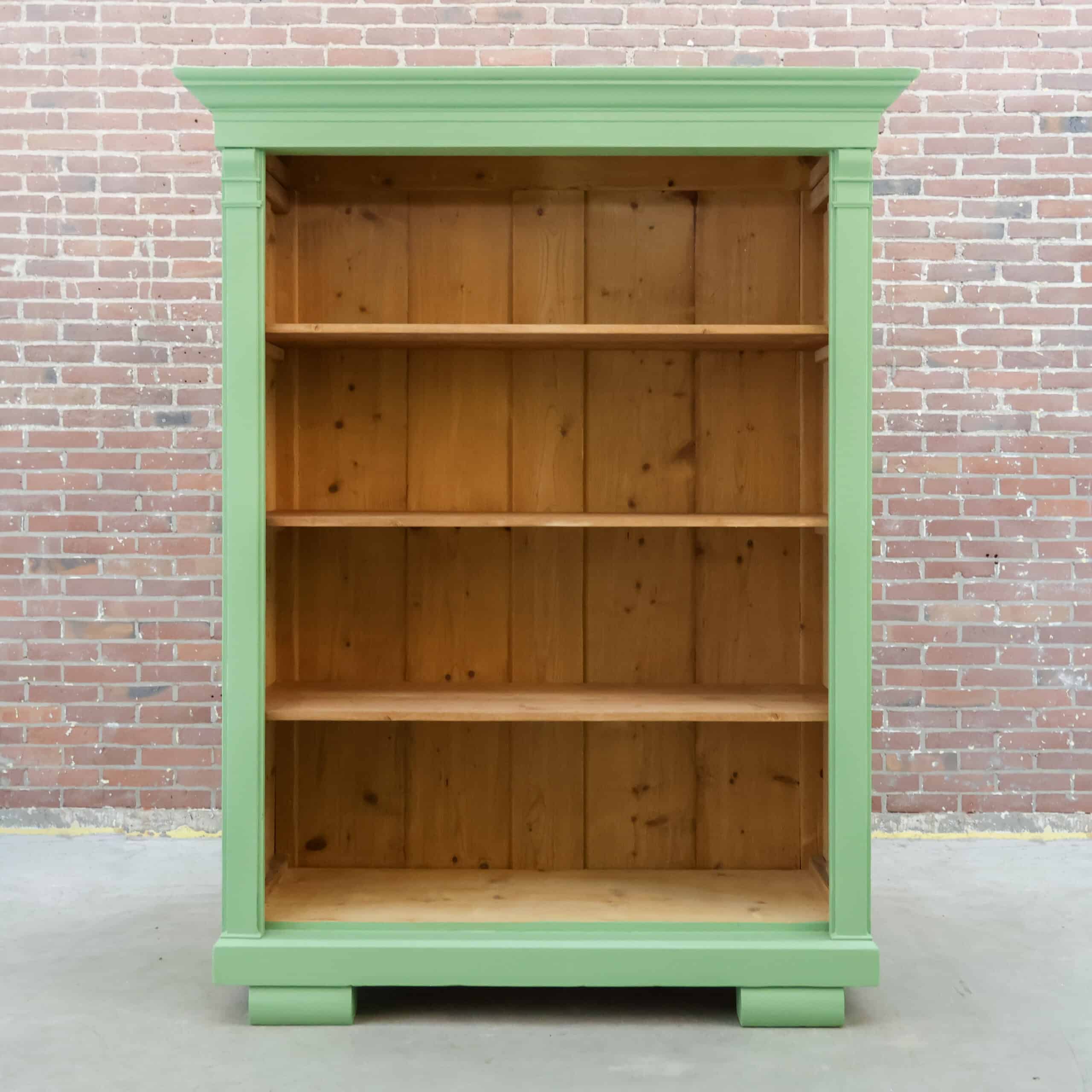 Mooie brocante open boekenkast uit Hongarije! De kast is in goede brocante staat en heeft een vrolijke uitstraling door haar groene kleur! Leuk voor bijvoorbeeld een kinderkamer.