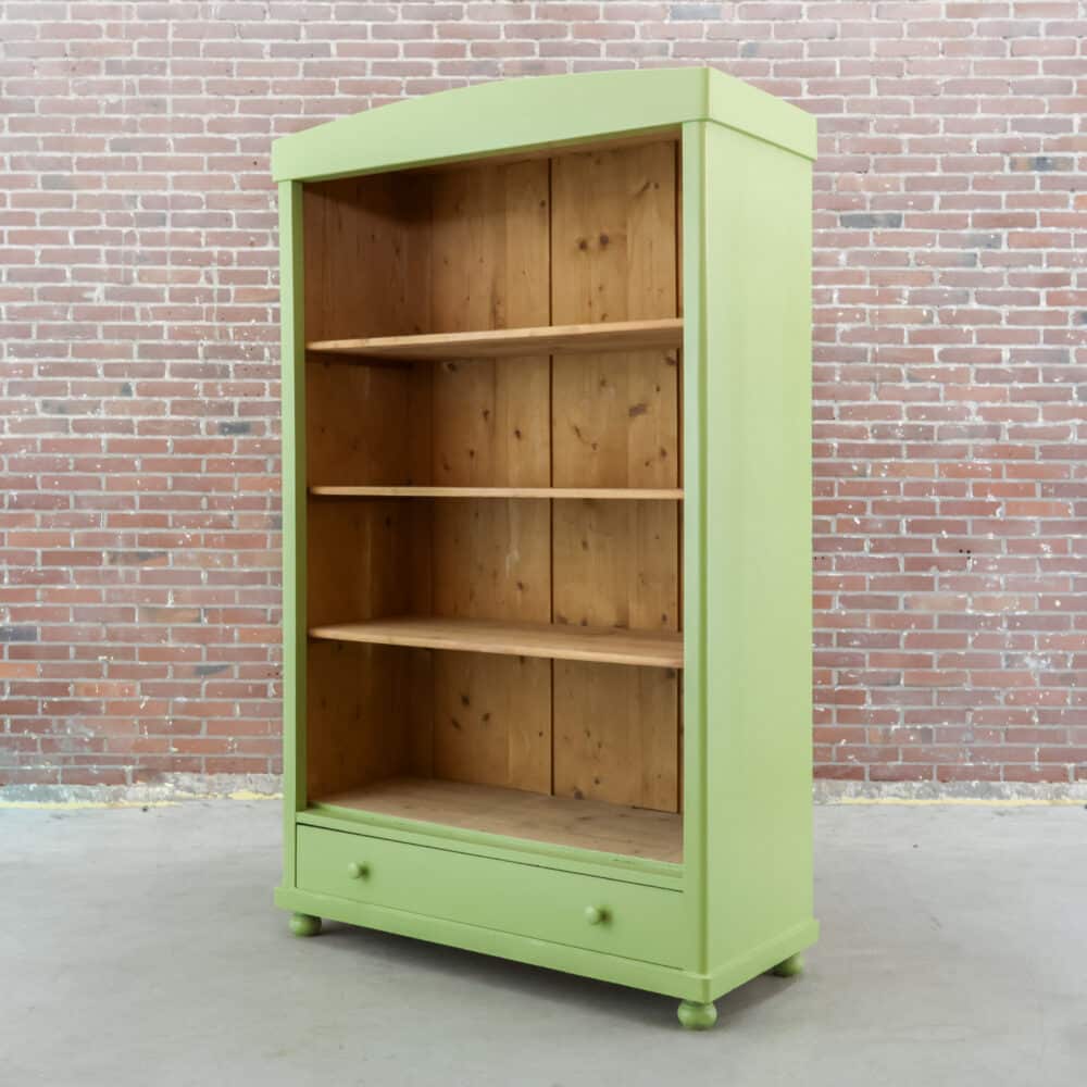 Mooie brocante open boekenkast uit Hongarije! De kast is in goede brocante staat en heeft een vrolijke uitstraling door haar groene kleur! Leuk voor bijvoorbeeld een kinderkamer.
