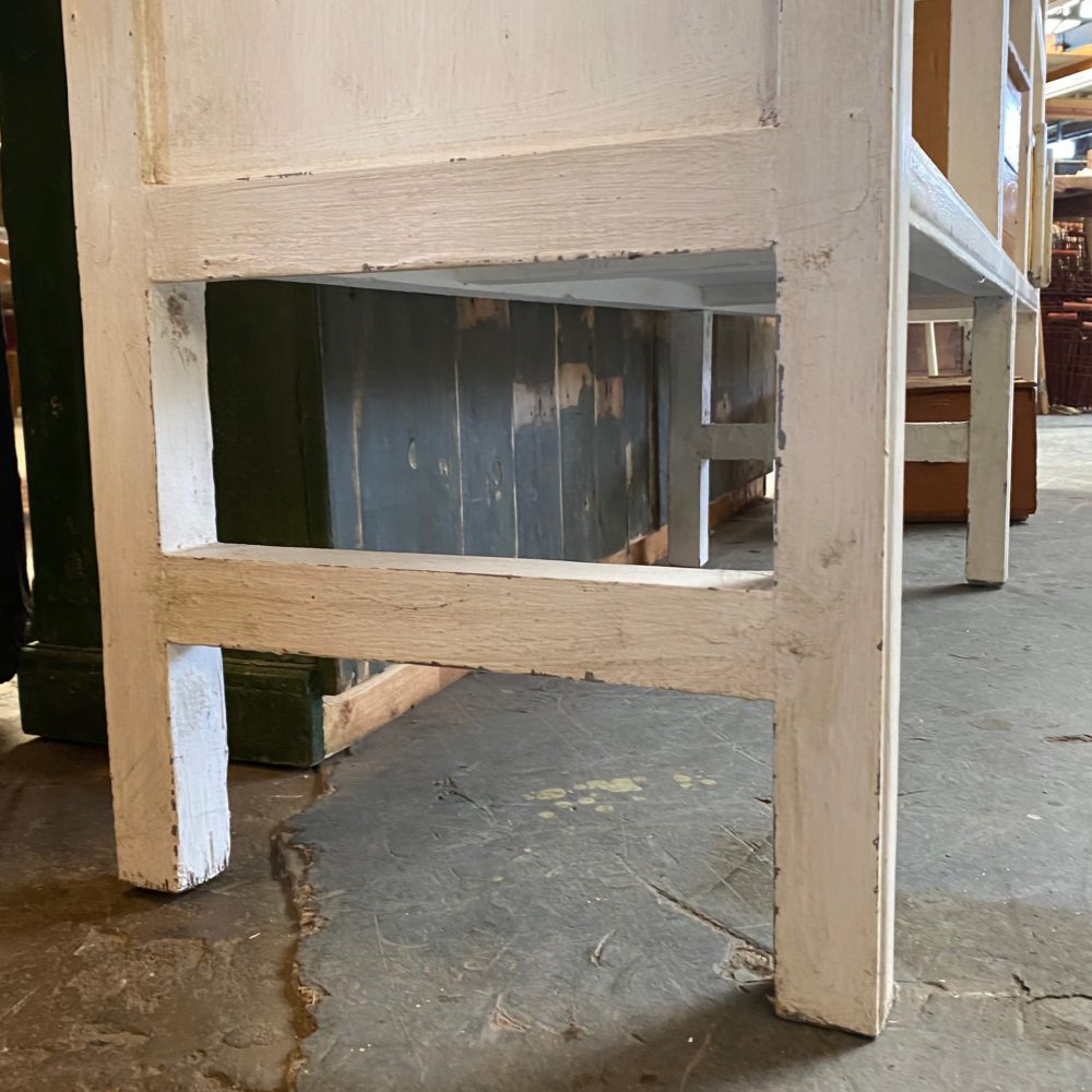 Deze grote open vakkenkast is gemaakt van hout. De kast is wit geschilderd. De kast bestaat uit twee delen die op elkaar staan en heeft ook in het midden poten om het gewicht te kunnen dragen. De vakkenkast heeft in totaal twaalf open vakken.
