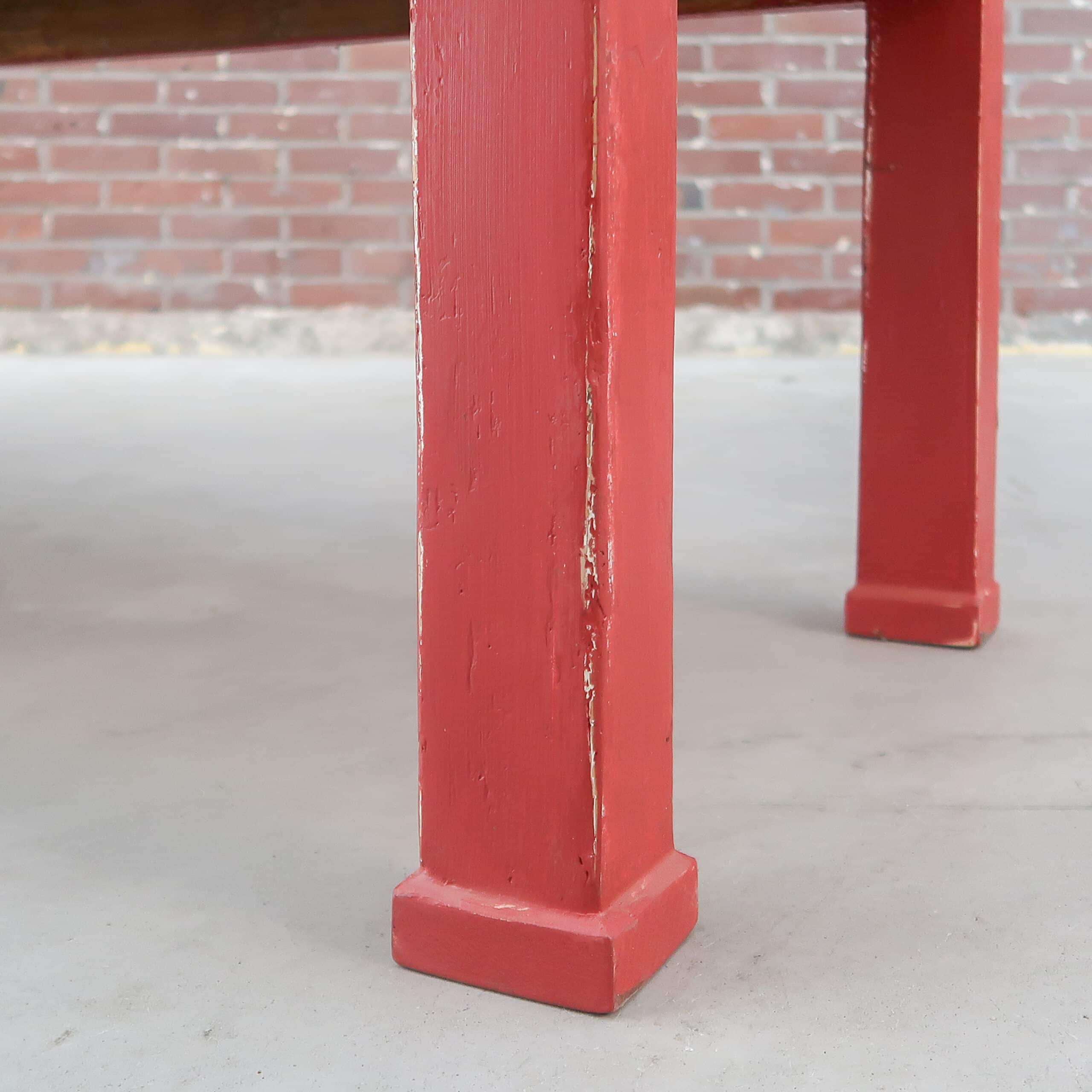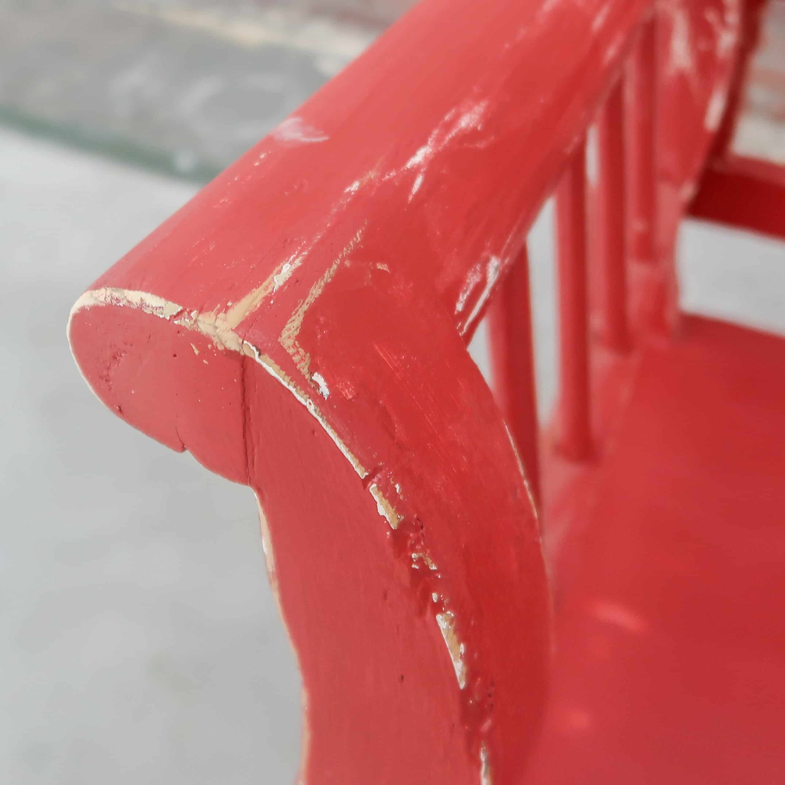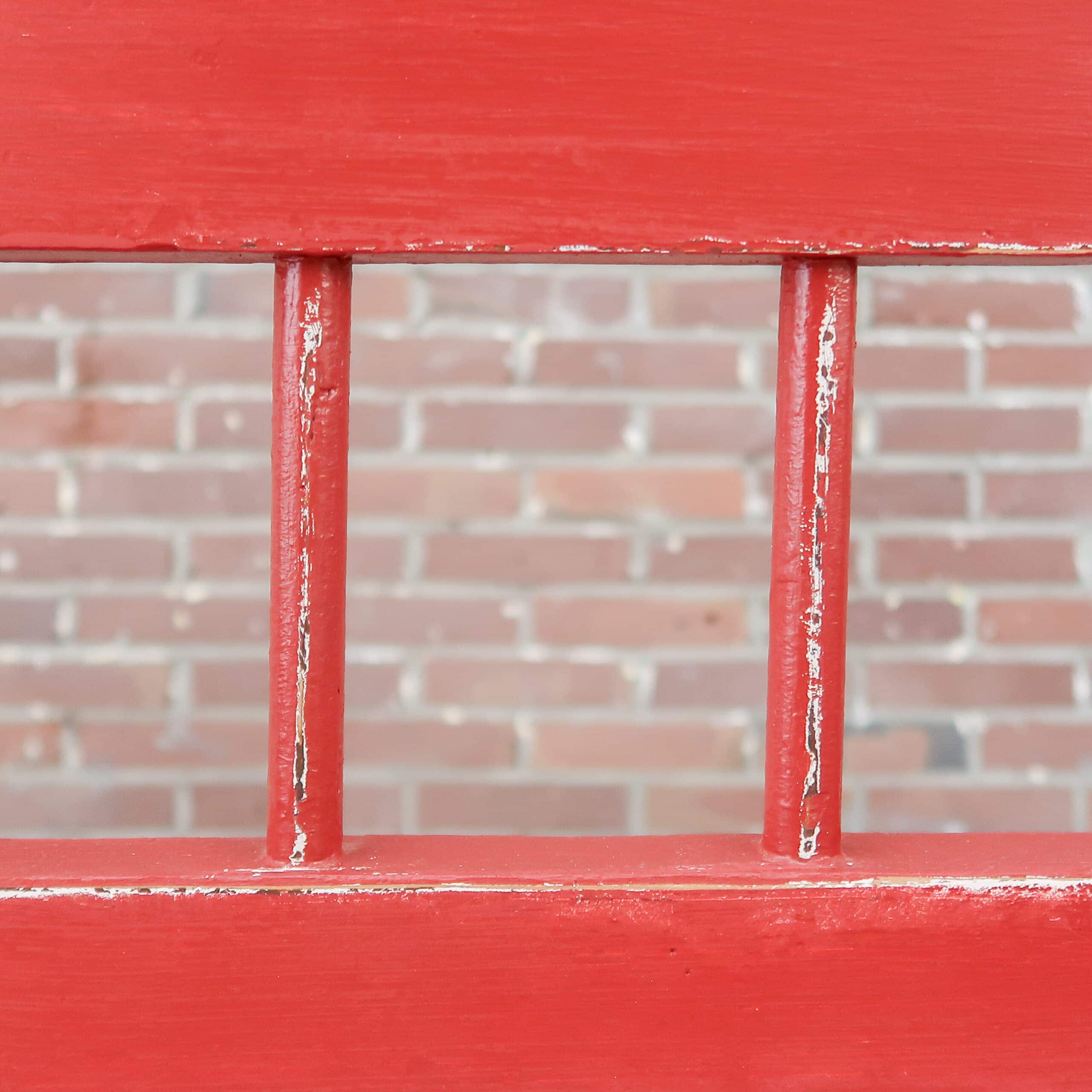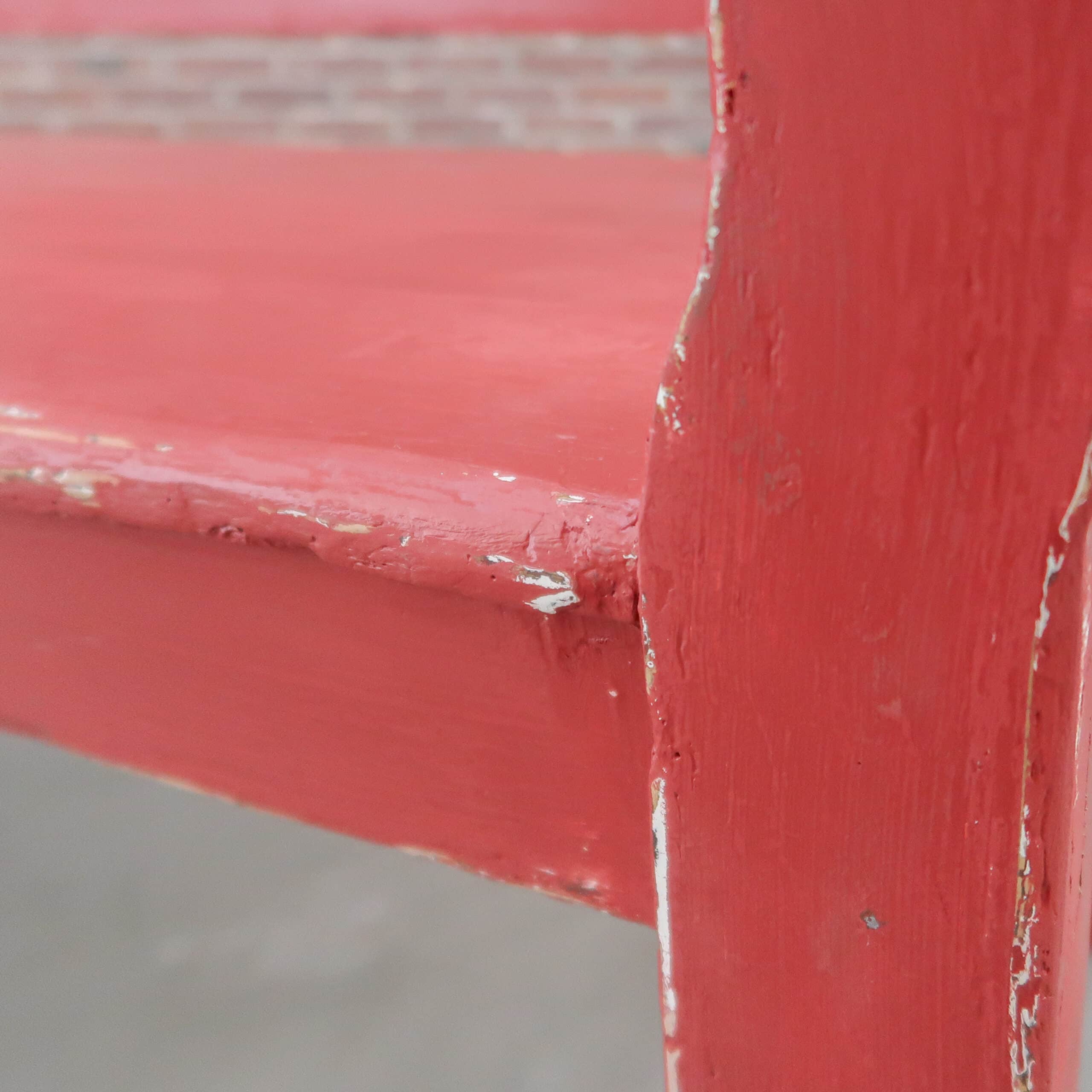 Deze verweerde houten bank, gevonden in Hongarije, heeft een prachtige authentieke uitstraling. Het warme rood en de klassieke vorm geven karakter aan elk interieur of tuin. Gemaakt van stevig hout en met mooie details in de armleuningen. Een uniek stuk dat sfeer en geschiedenis meebrengt.