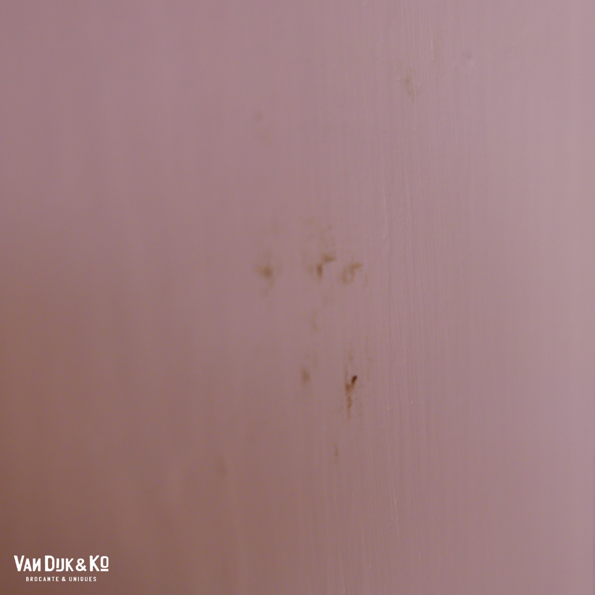 Deze brocante linnenkast is gemaakt van hout en roze geschilderd. De kast heeft één brede dichte deur, die naar links opent. Binnenin zijn drie nieuwe planken gemaakt. De kast is afsluitbaar met een slot en heeft een sleutel en staat op elegante pootjes.