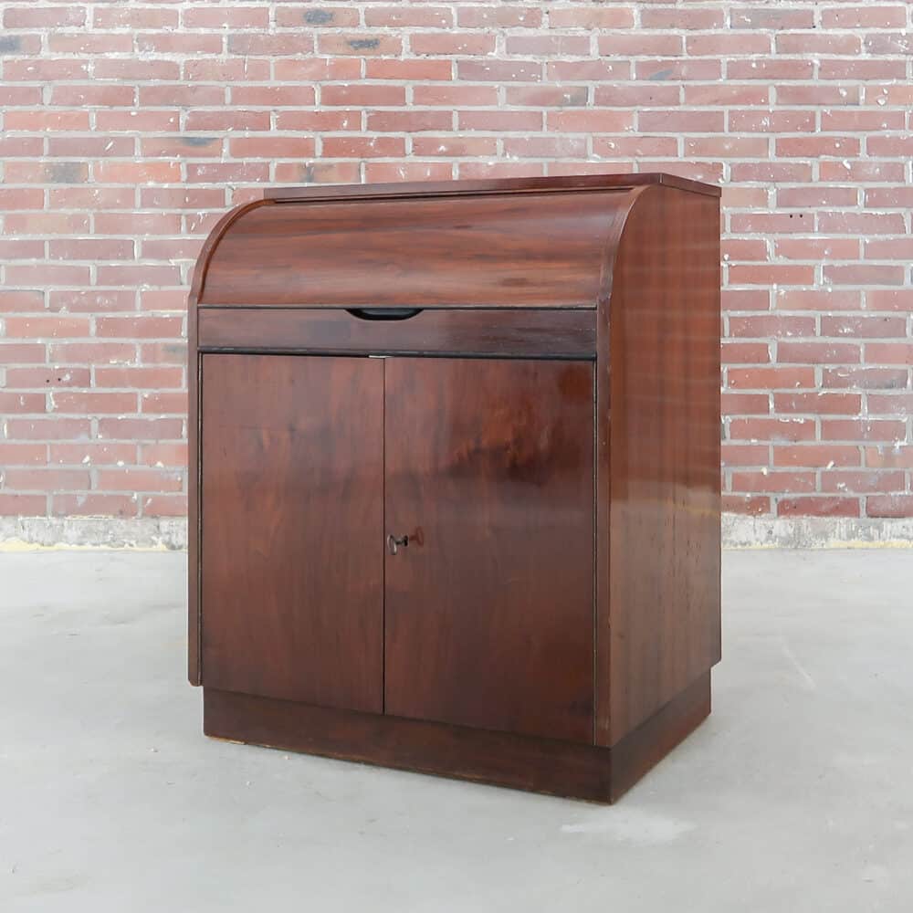 Het meubel is ontworpen met een elegant rolluik en een onderkast met vakverdeling voor LP’s – praktisch en stijlvol tegelijk.