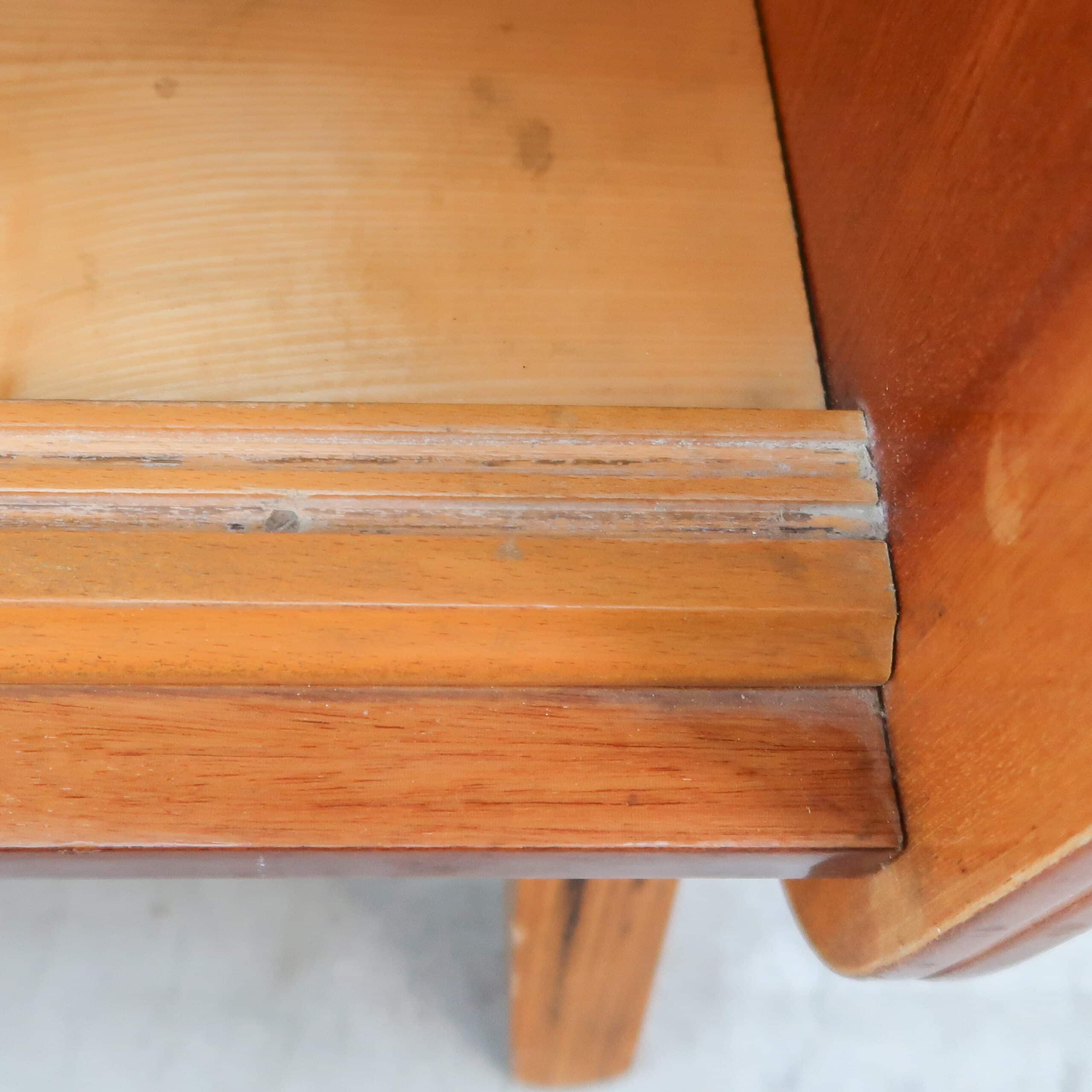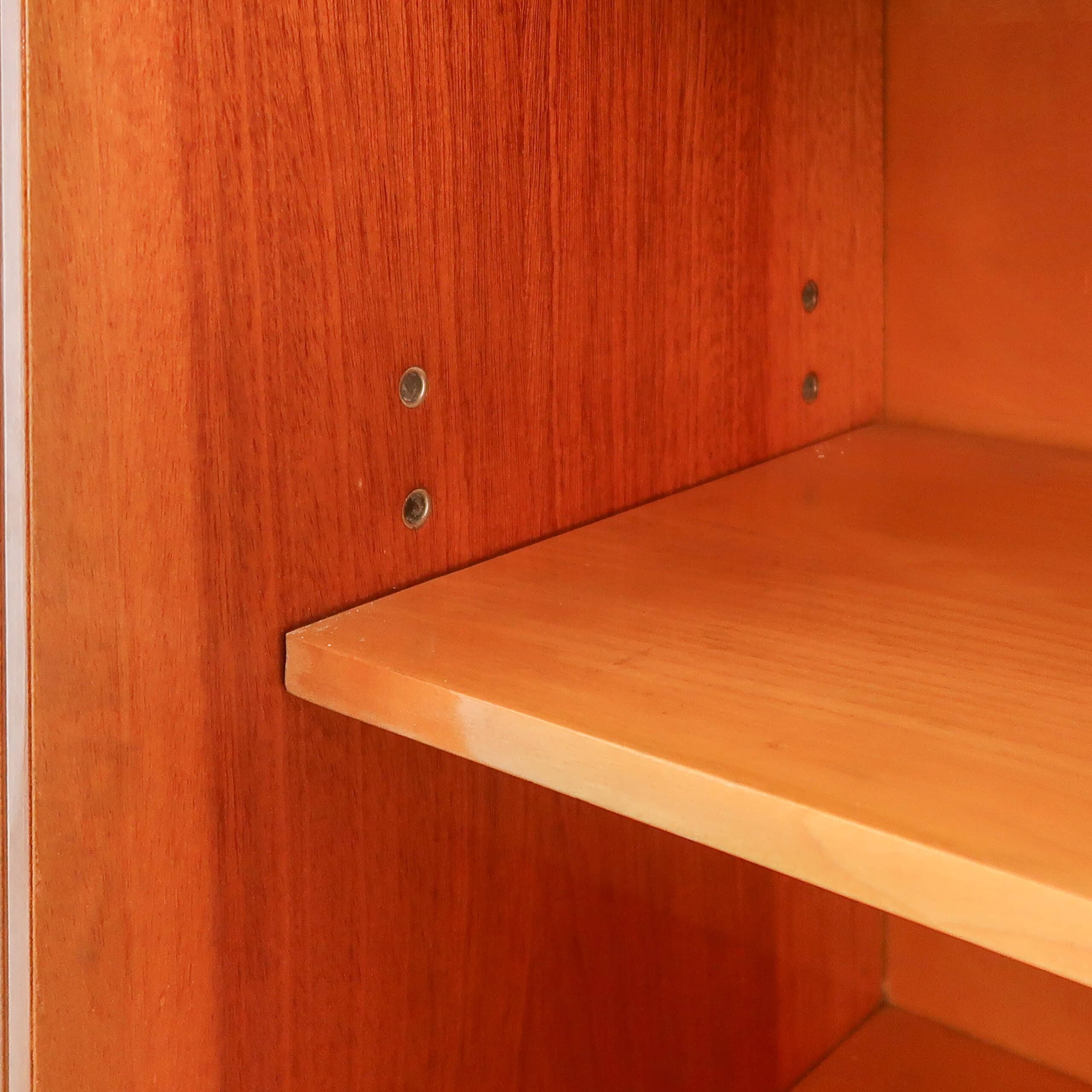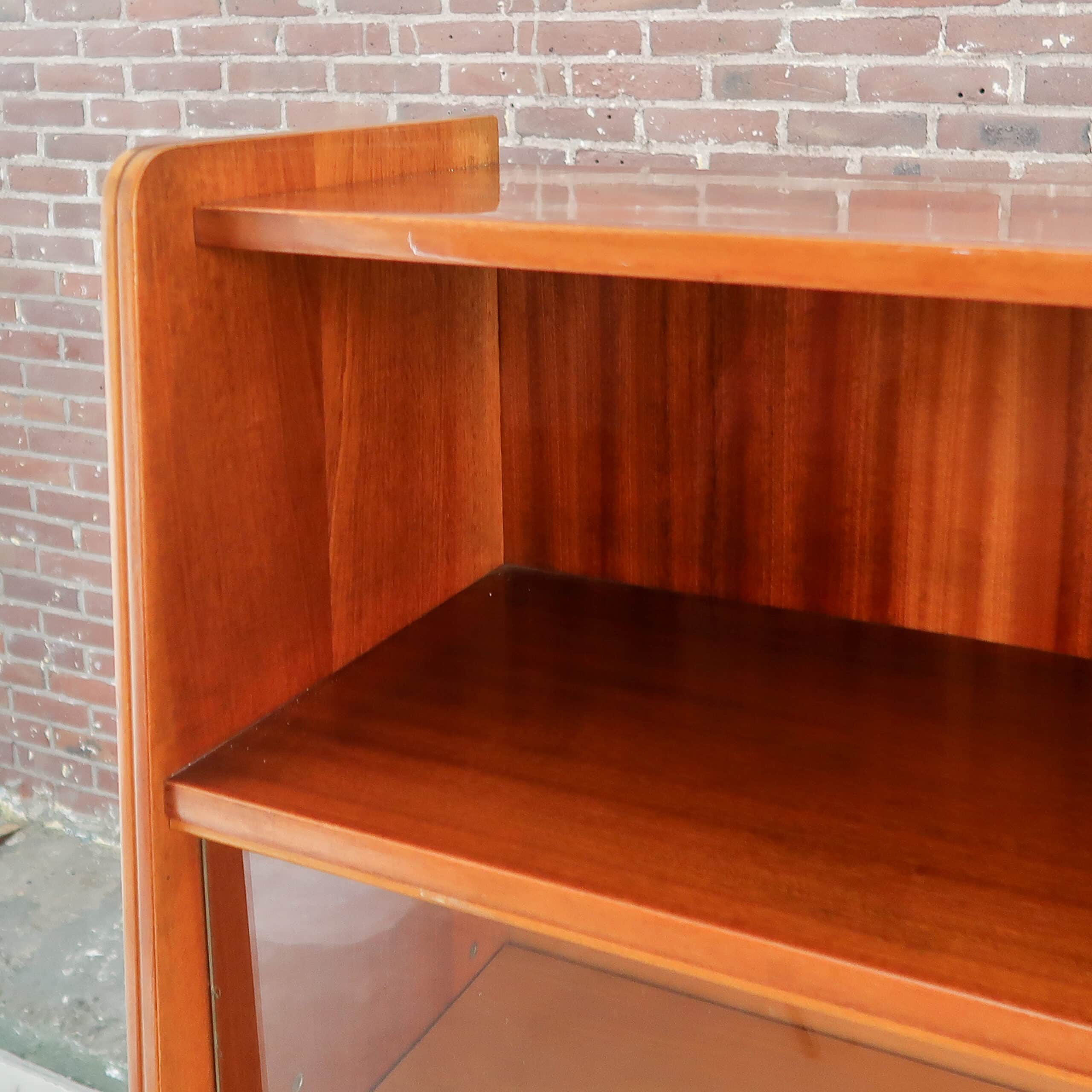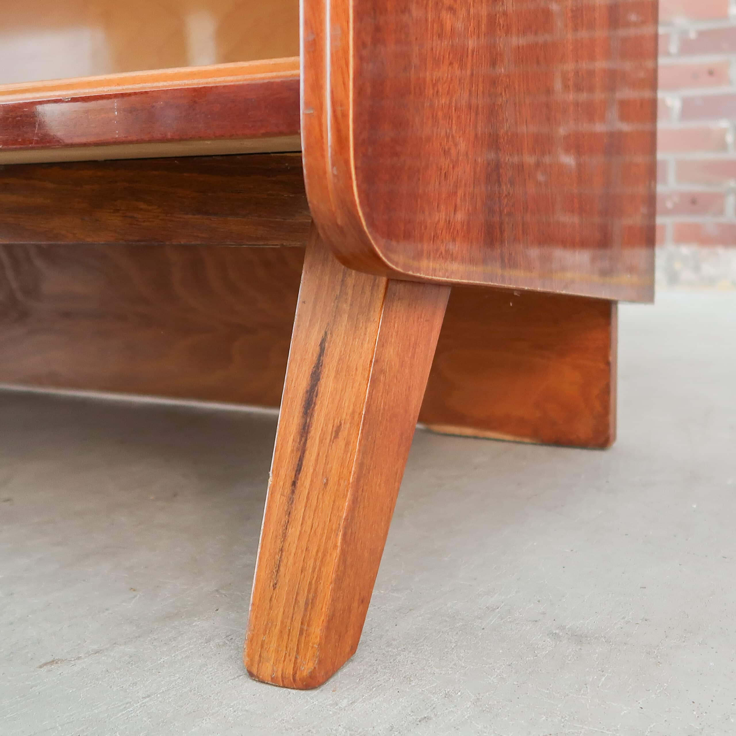 Vintage boekenkast van Tatra Nábytok, Tsjechoslowakije, jaren ’60. Strak ontwerp met schuifdeuren van glas en drie royale legplanken. De schuine poten en lichte lijnen geven het meubel een elegante mid-century uitstraling. Een praktisch en stijlvol stuk dat zowel als boekenkast of vitrinekast gebruikt kan worden.