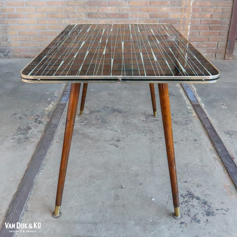 Deze leuke vintage formica tafels zijn echt te gek! Dit is een medium formaat. Leuk als bijzettafeltje.