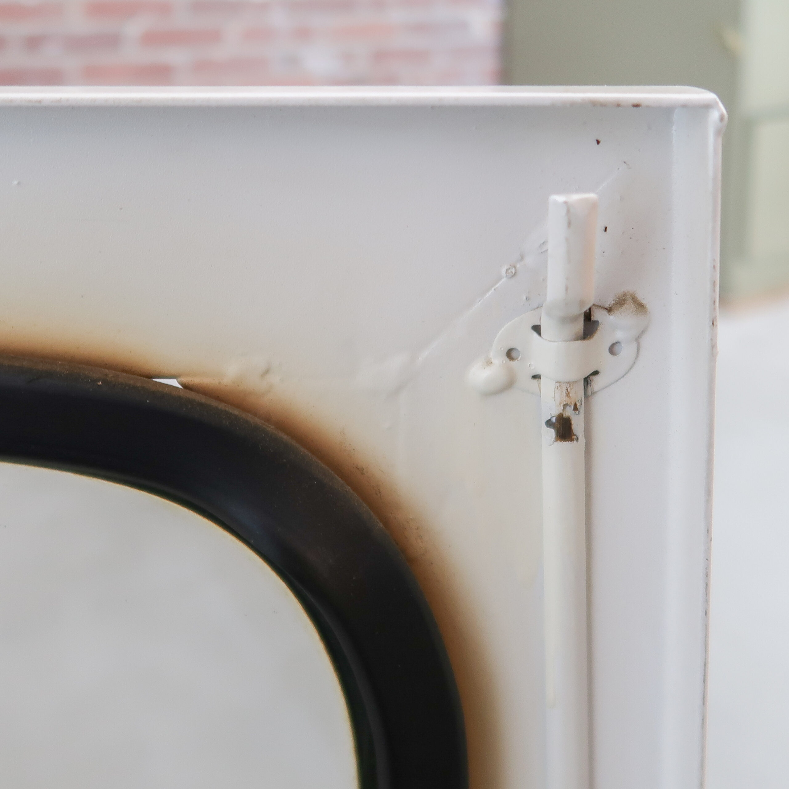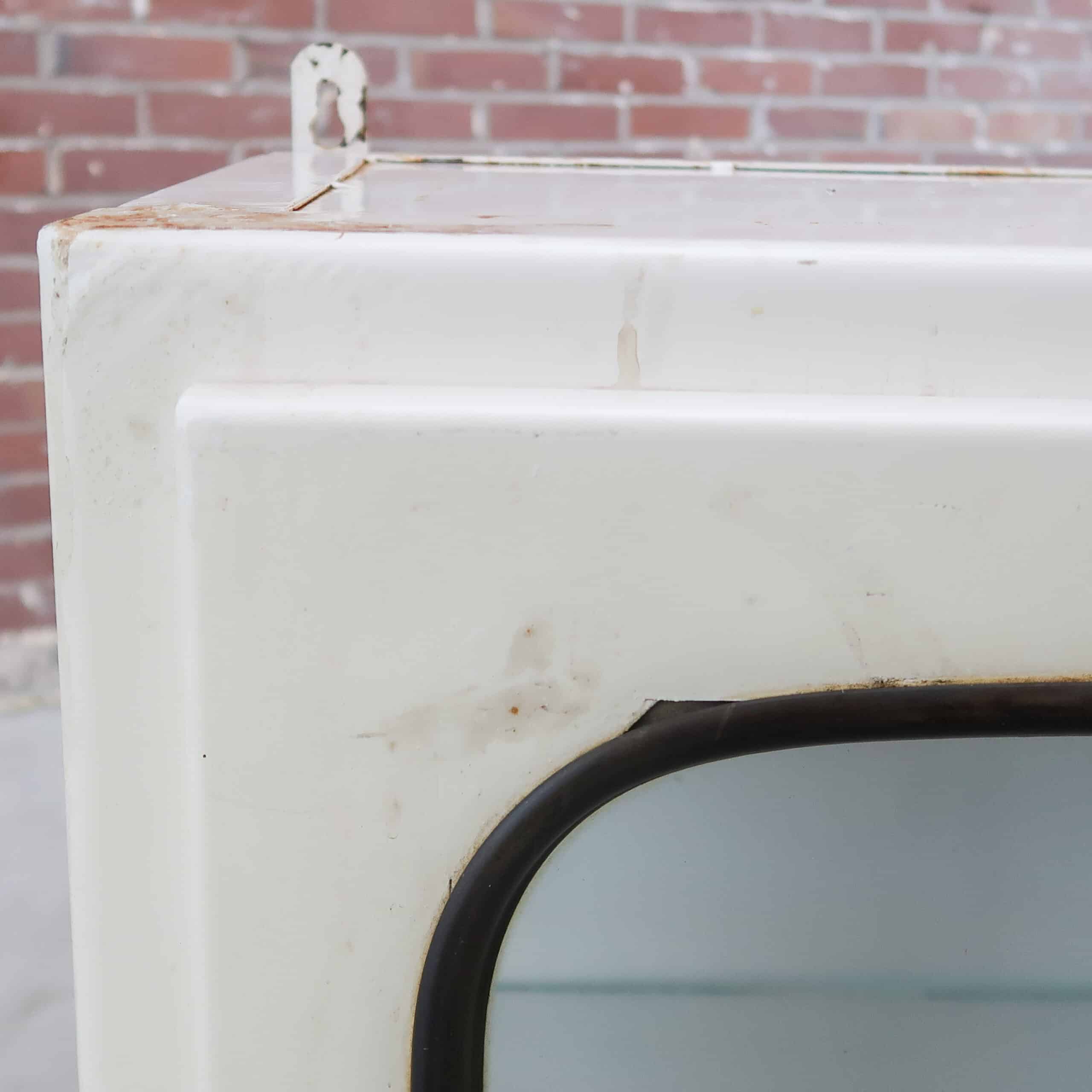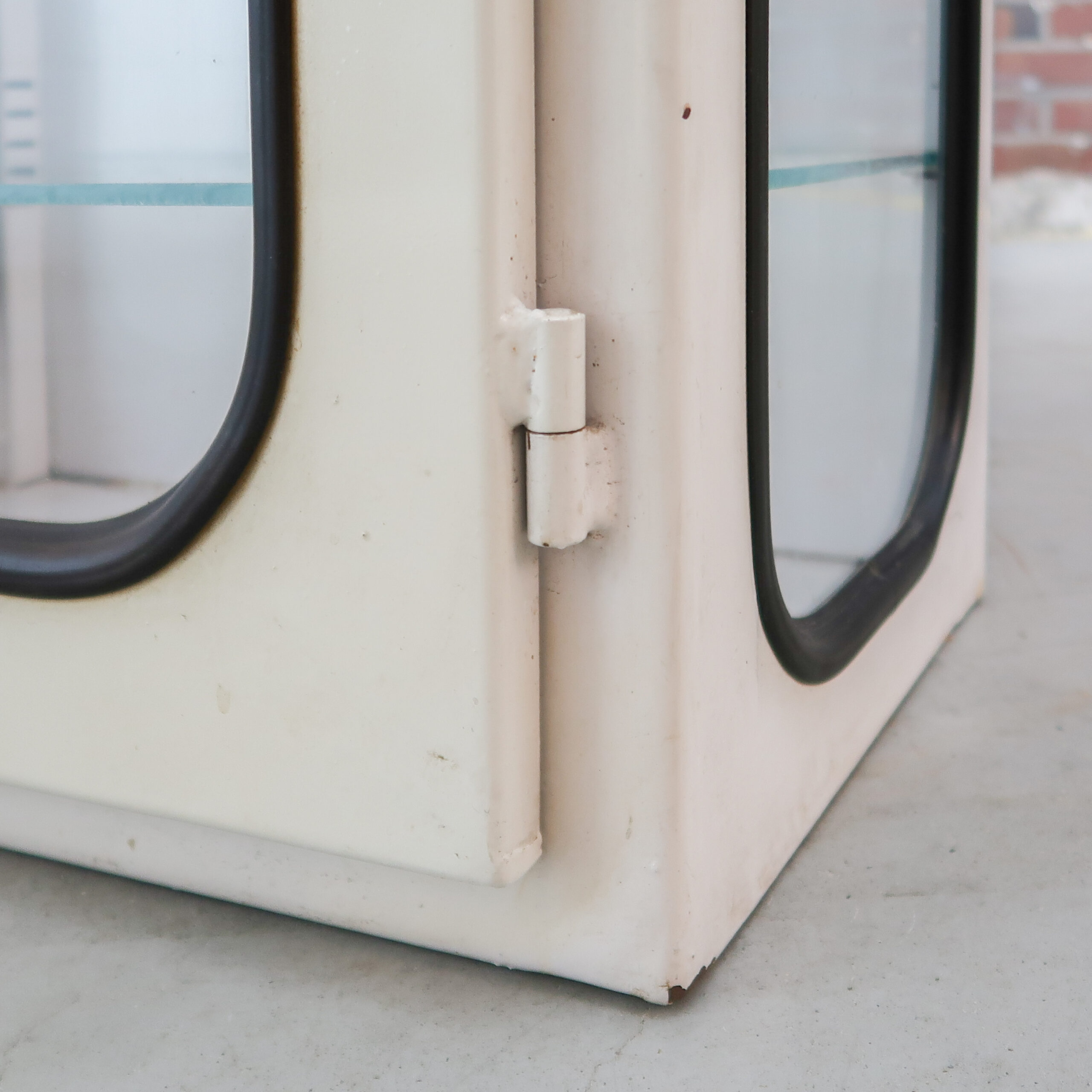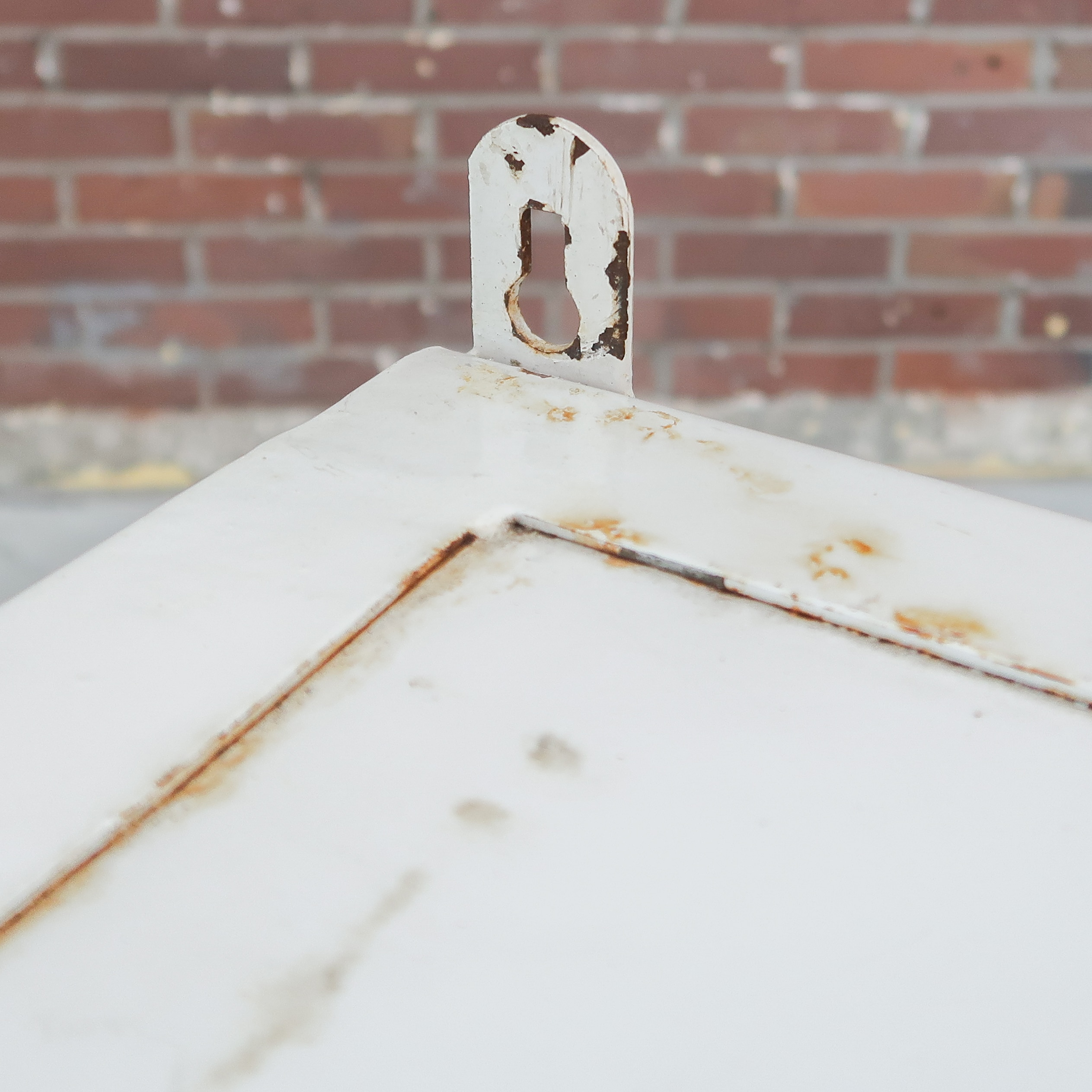 Stoer en stijlvol, dit vintage metalen kastje met glazen legplanken is een echte blikvanger aan de muur. Oorspronkelijk bedoeld als medicijnkast, maar nu perfect als mini-vitrinekast voor je mooiste spulletjes. Functioneel én karaktervol.