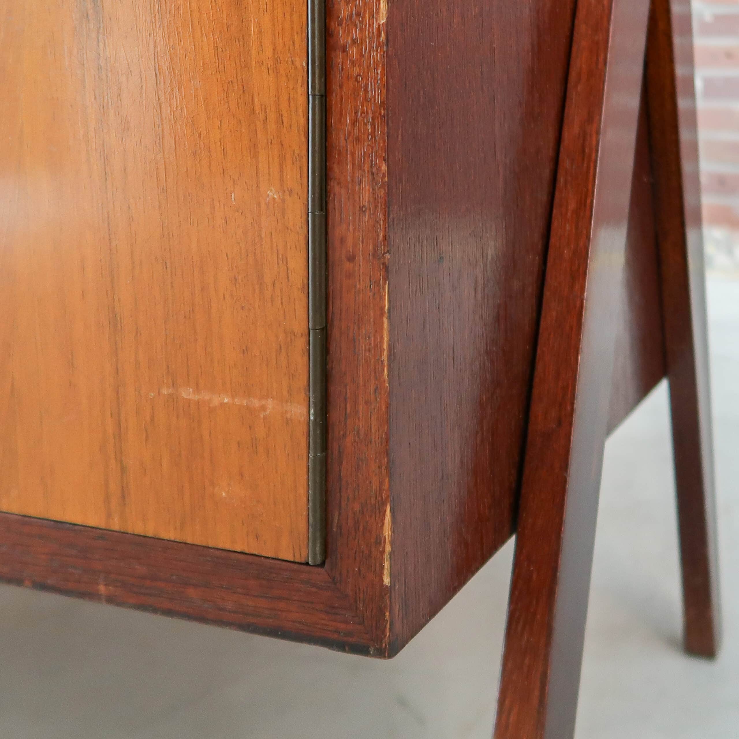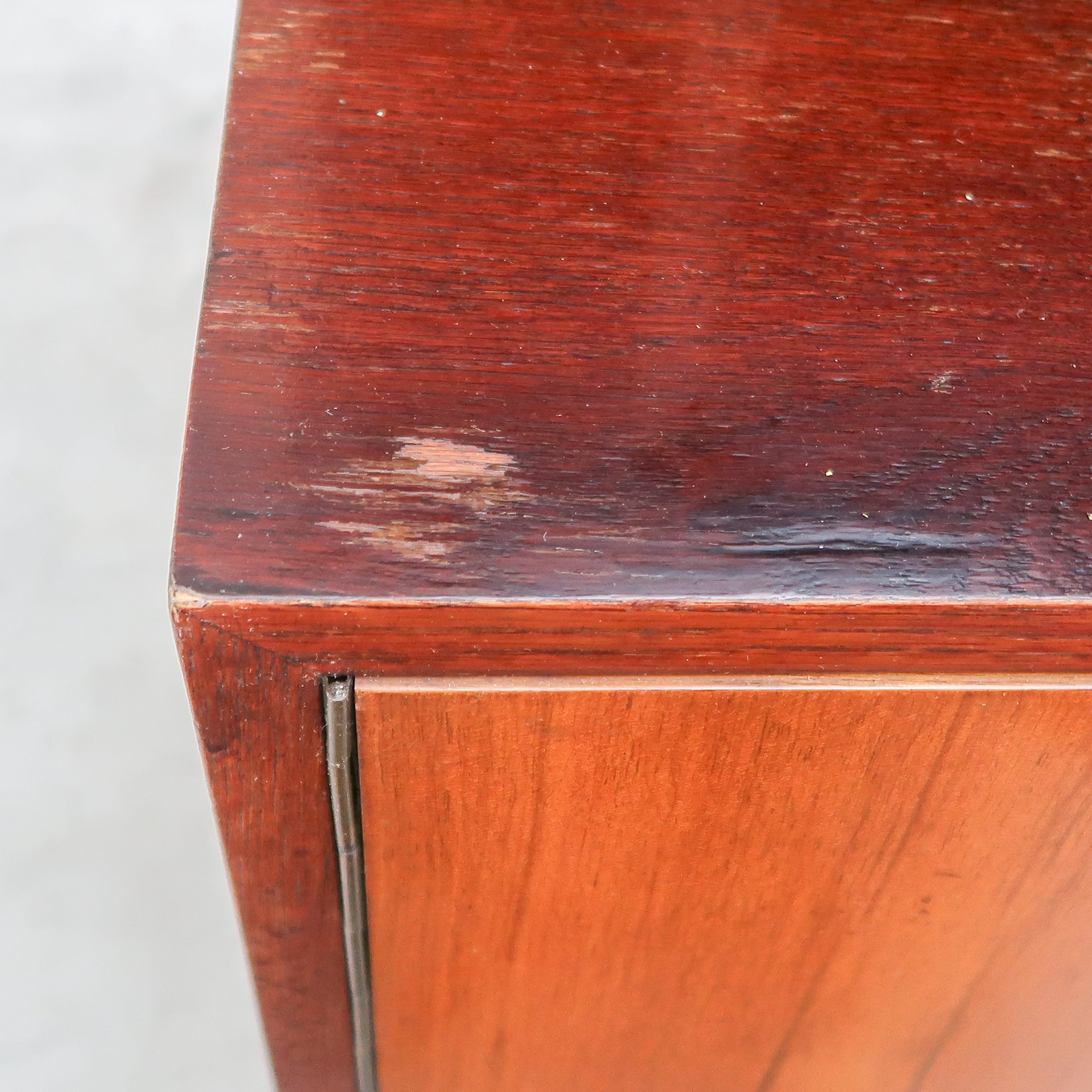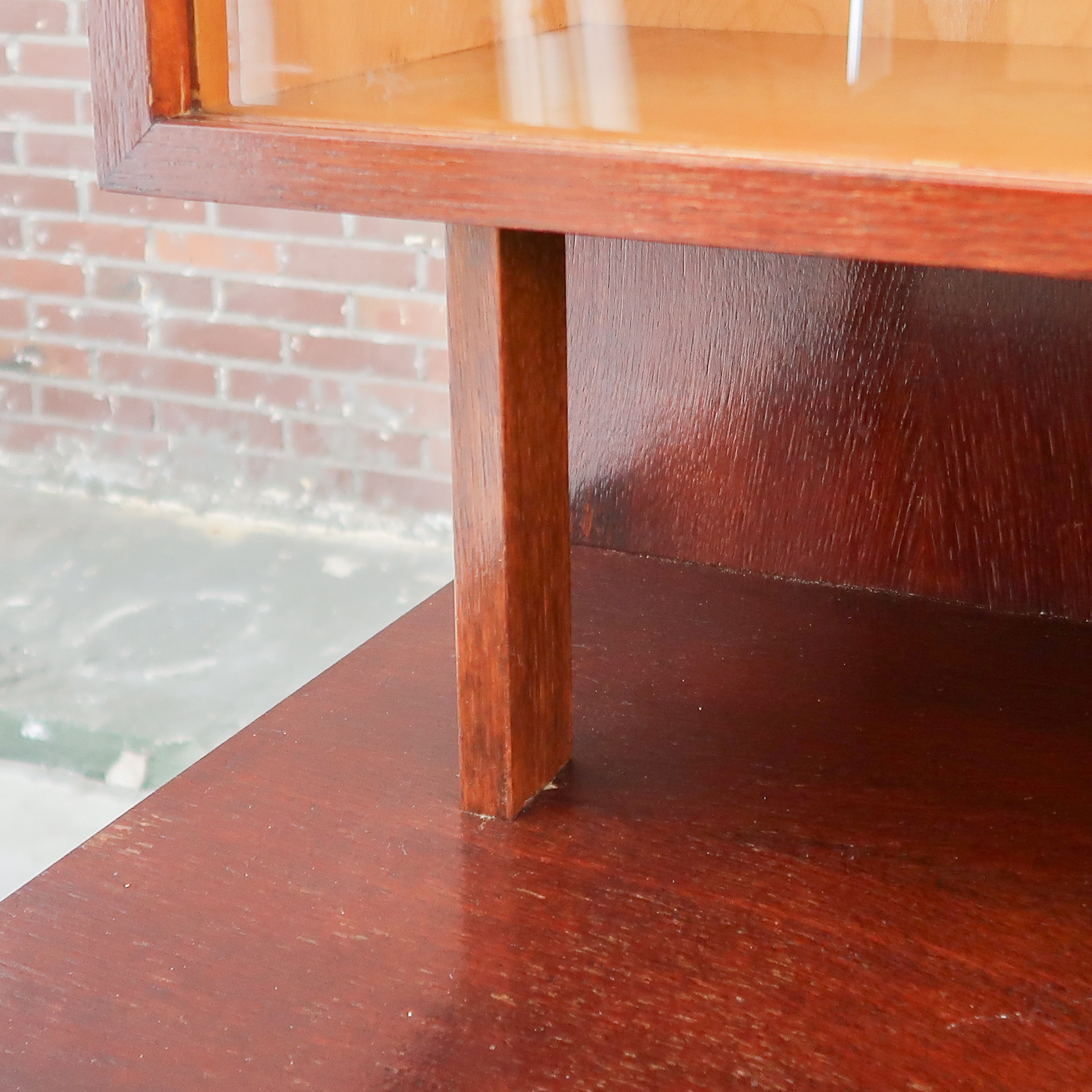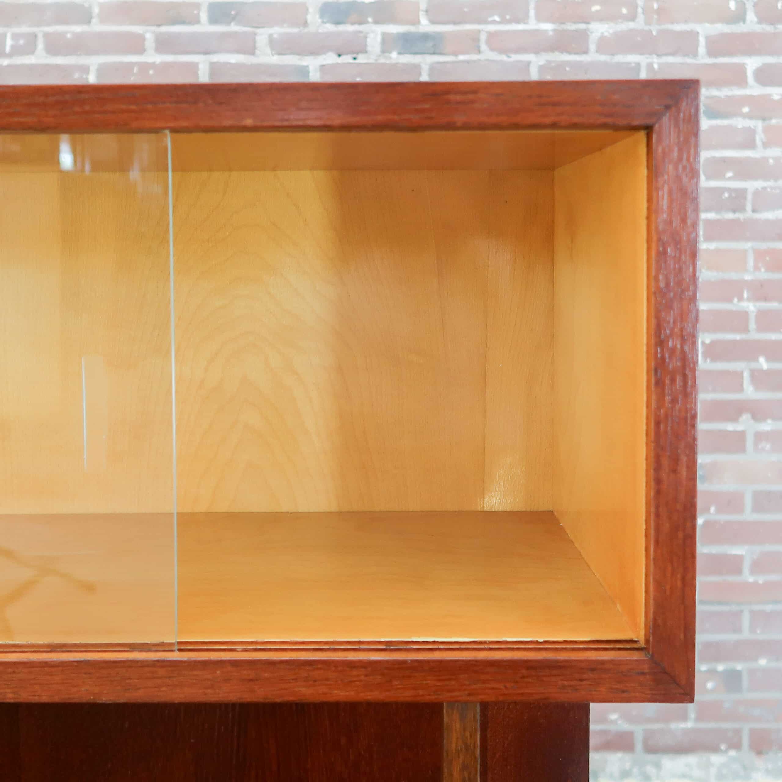 Deze karaktervolle vitrinekast komt uit het voormalige Oostblok en stamt uit de jaren 60. De strakke vormgeving, slanke pootjes en warme houttonen geven ‘m die typische mid-century modern uitstraling. Het open bovenvak is perfect voor je mooiste objecten of servies, terwijl het ondergedeelte met deuren volop opbergruimte biedt.