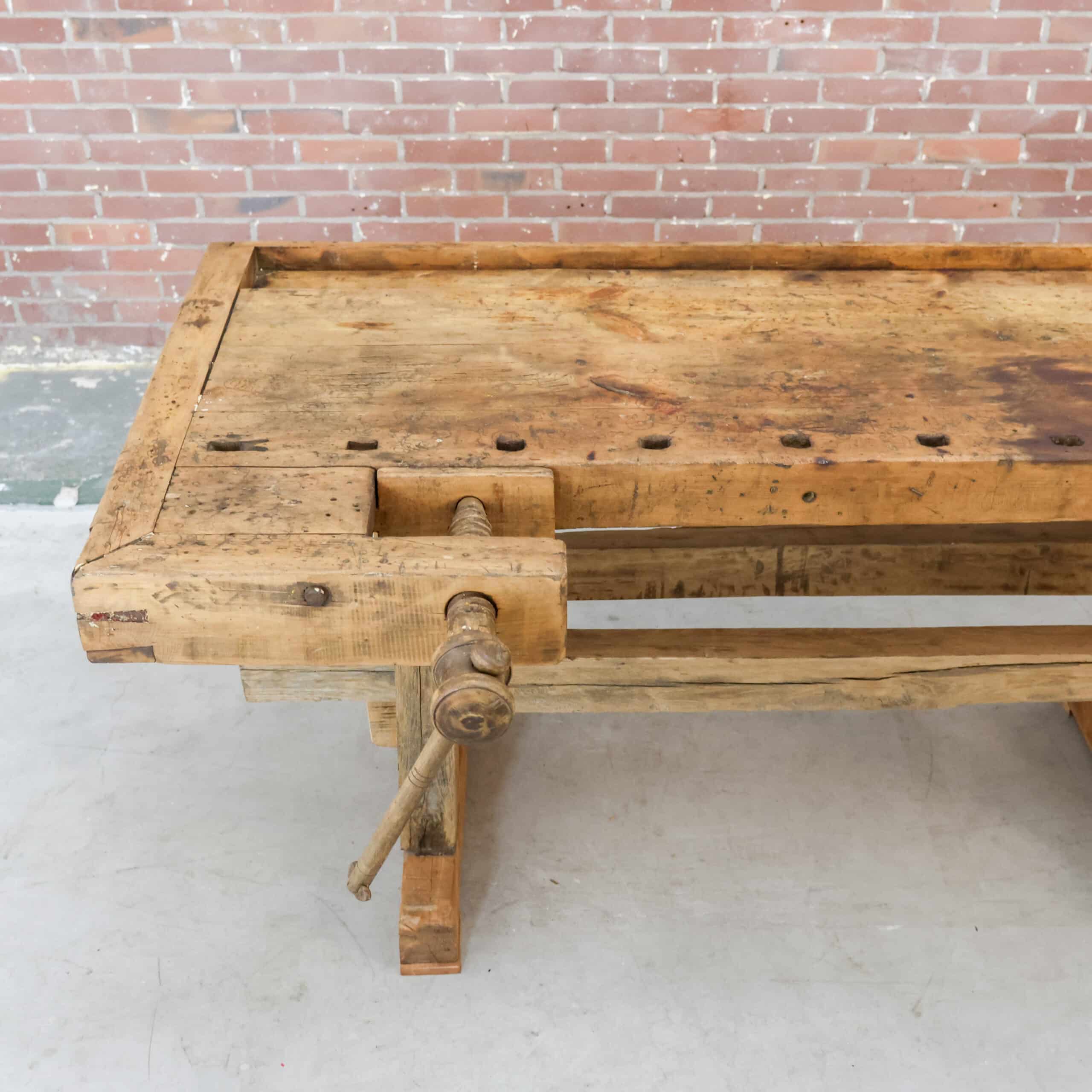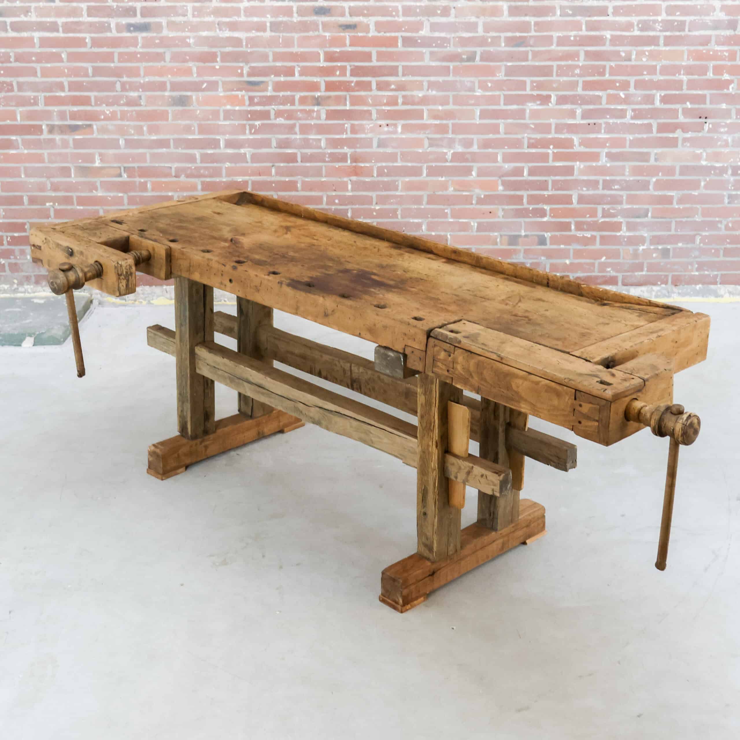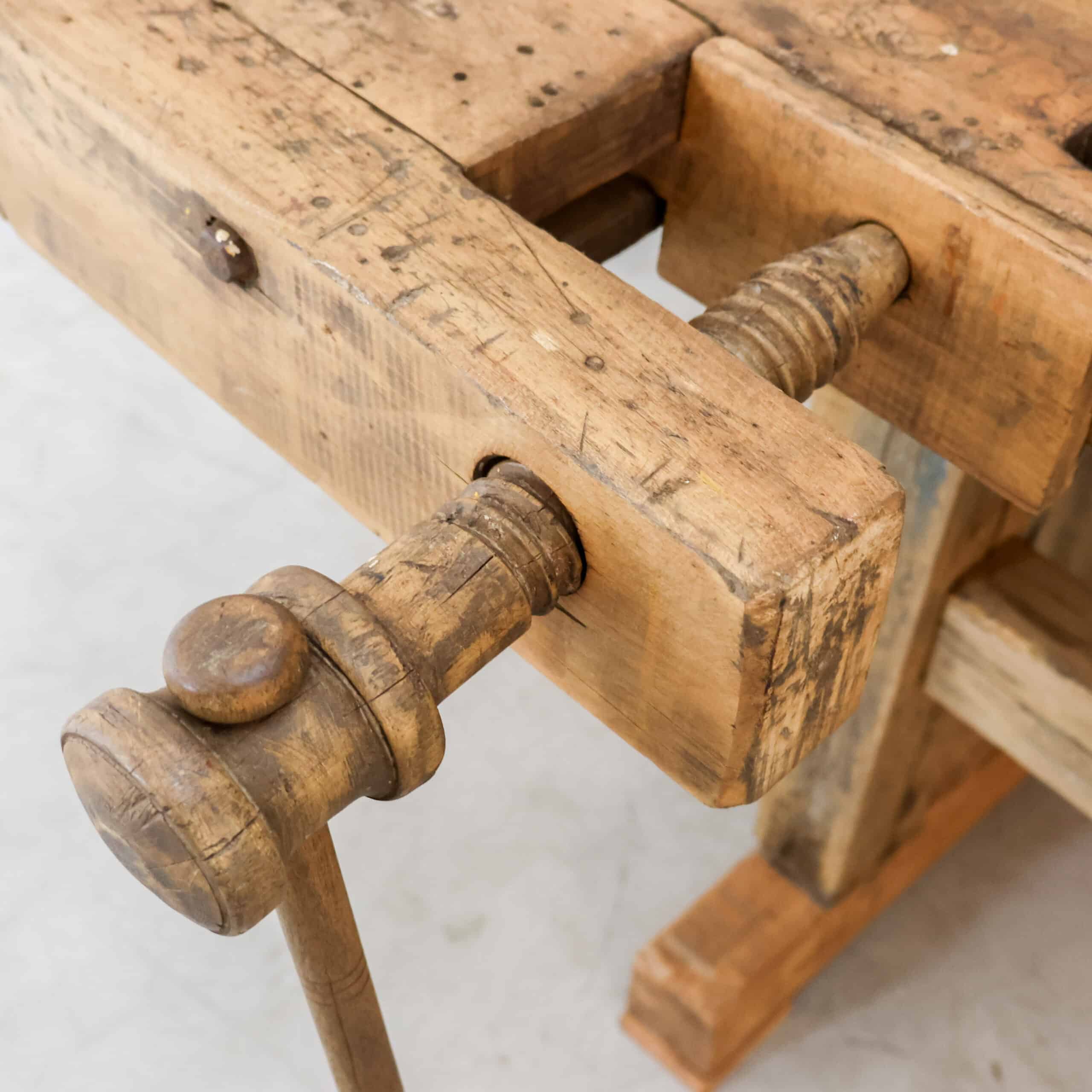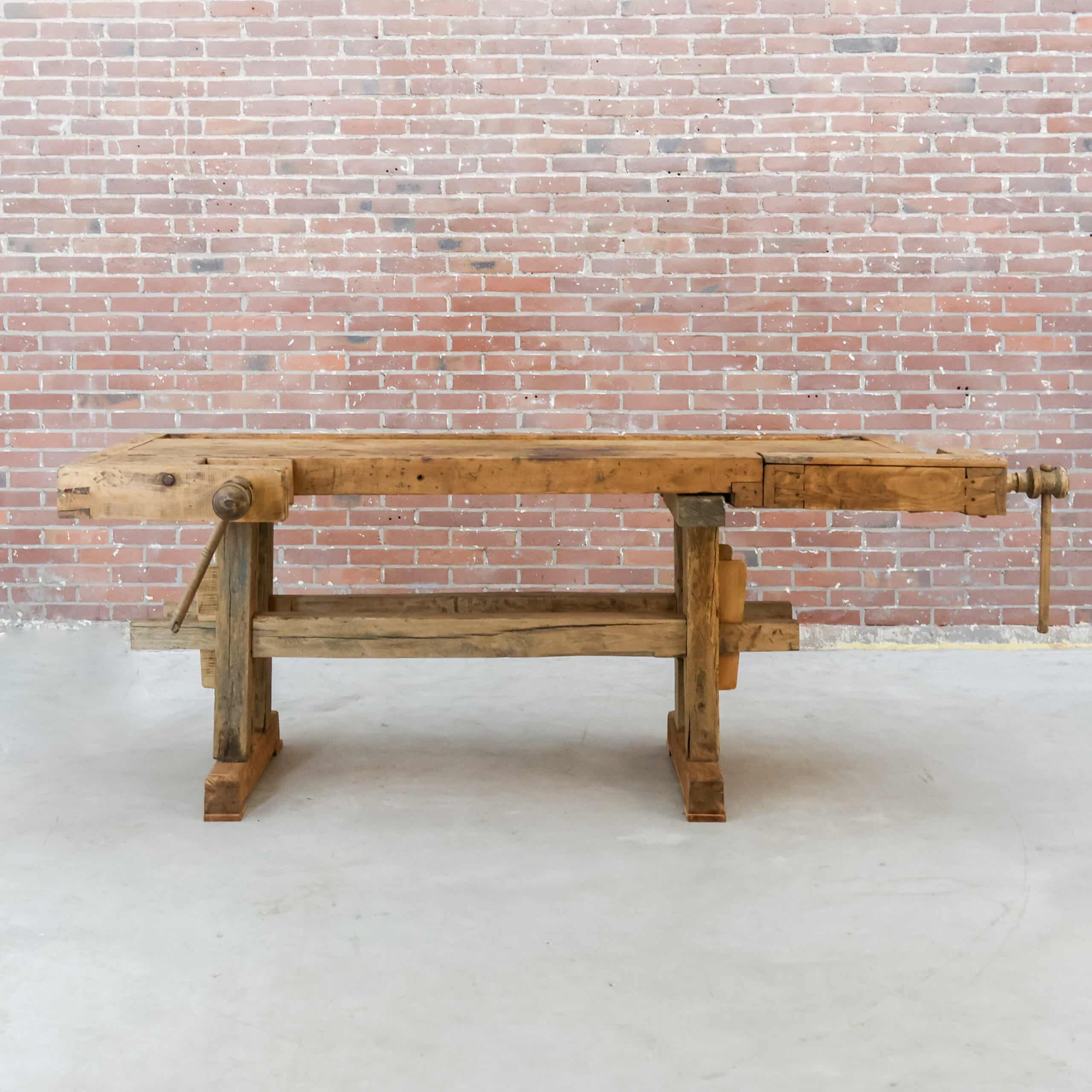 Ze blijven mooi, onze vintage werkbanken. En daarom hebben we ze ook altijd op voorraad in verschillende soorten, met of zonder schroef, maten & houtkleuren. Elk exemplaar is uniek.