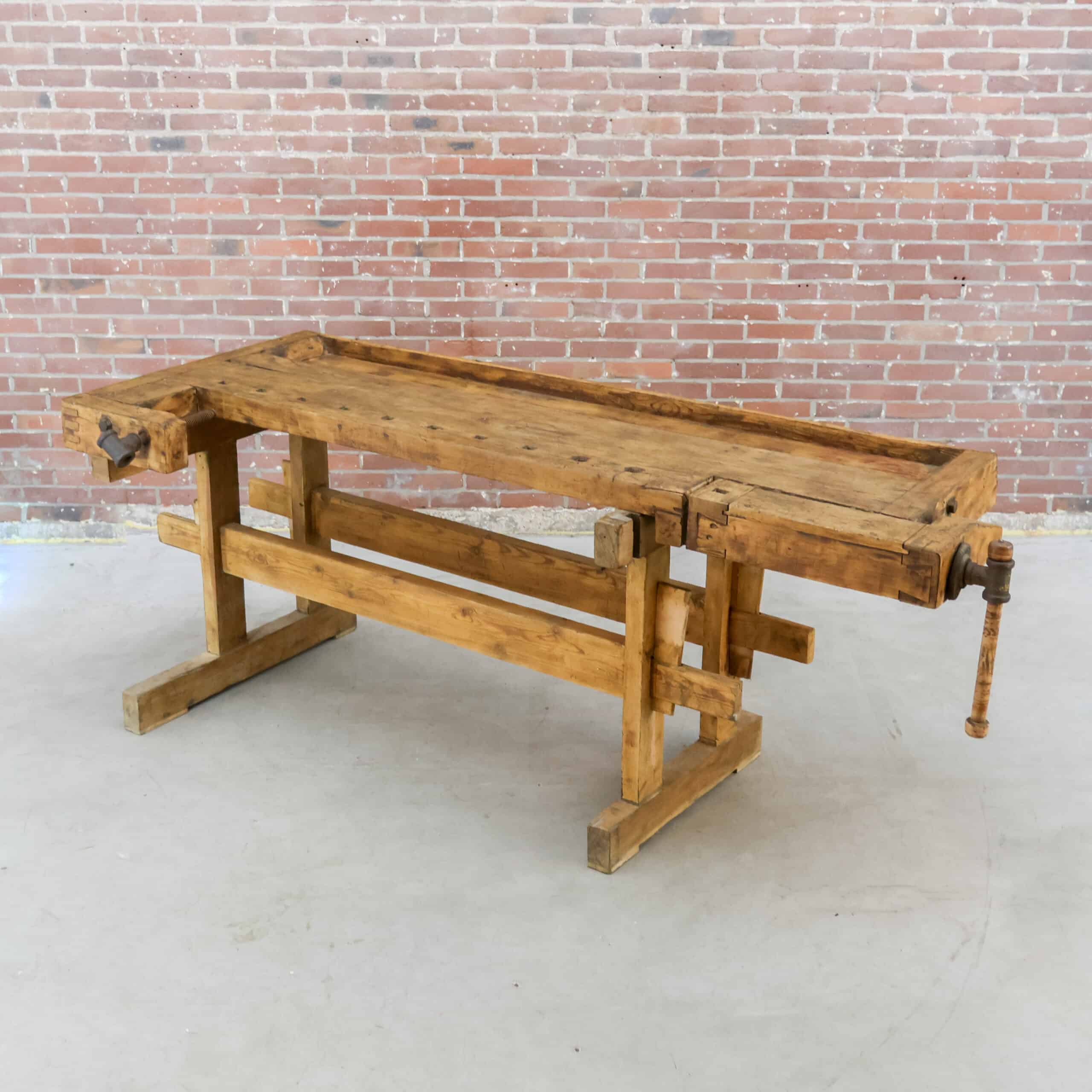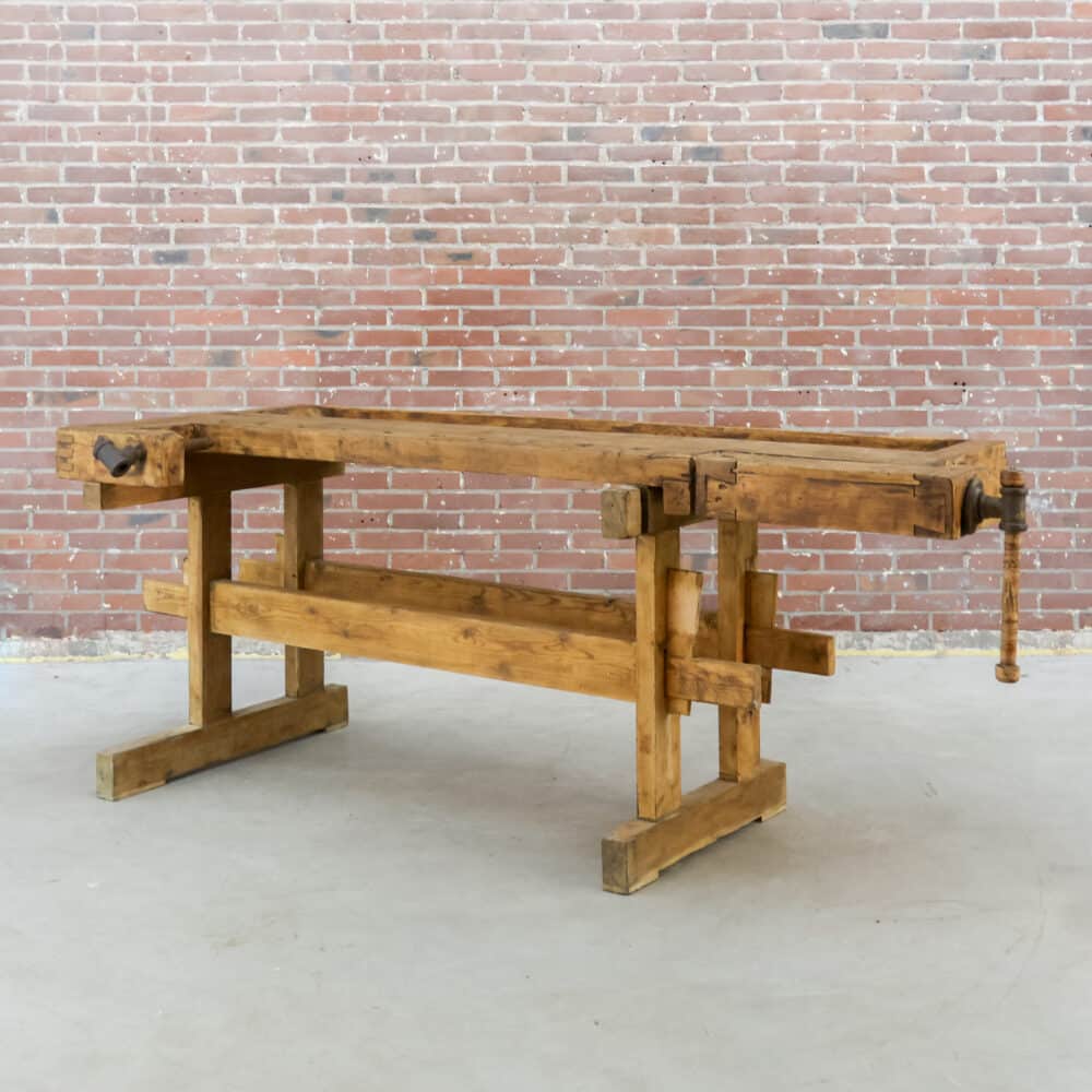 Ze blijven mooi, onze vintage werkbanken. En daarom hebben we ze ook altijd op voorraad in verschillende soorten, met of zonder schroef, maten & houtkleuren. Elk exemplaar is uniek.