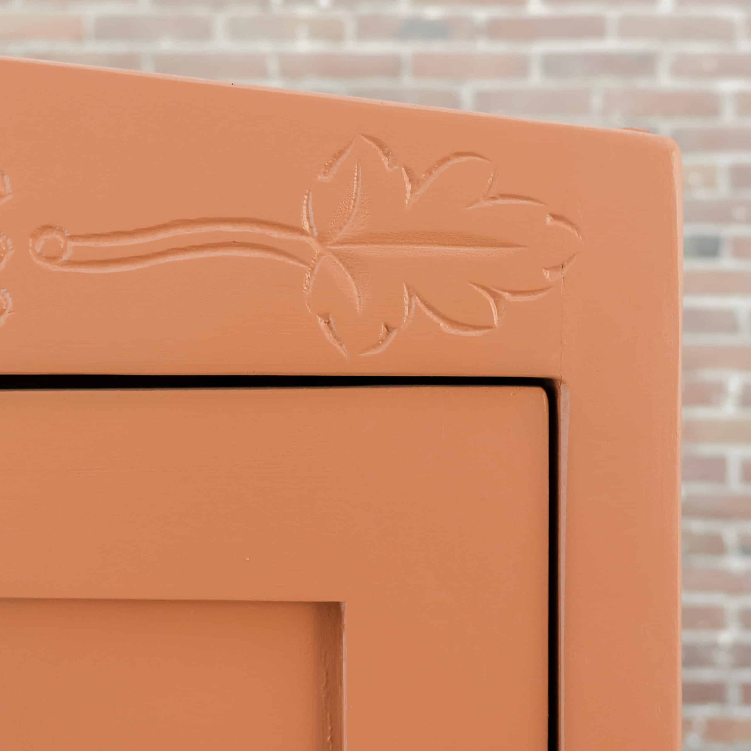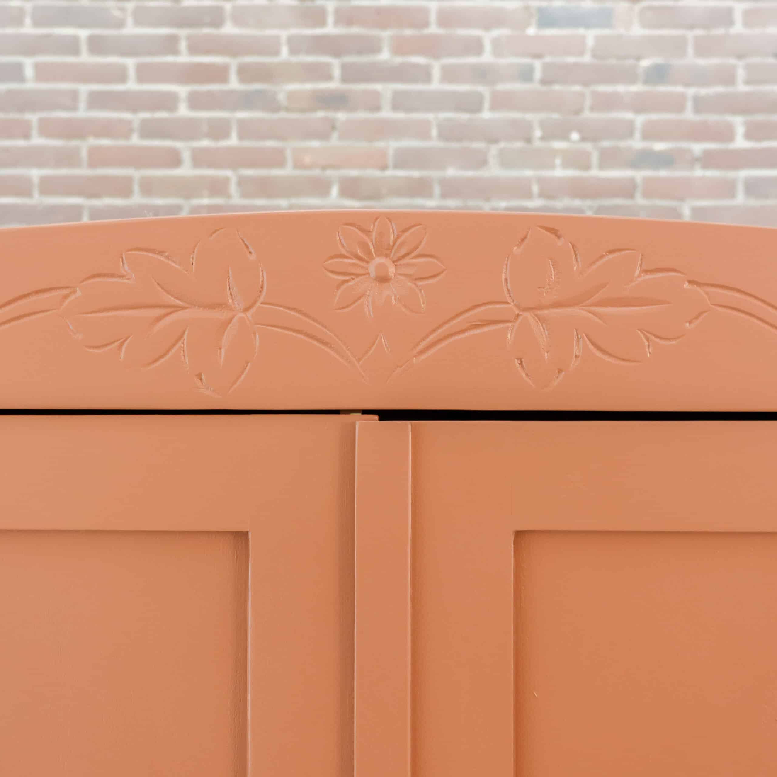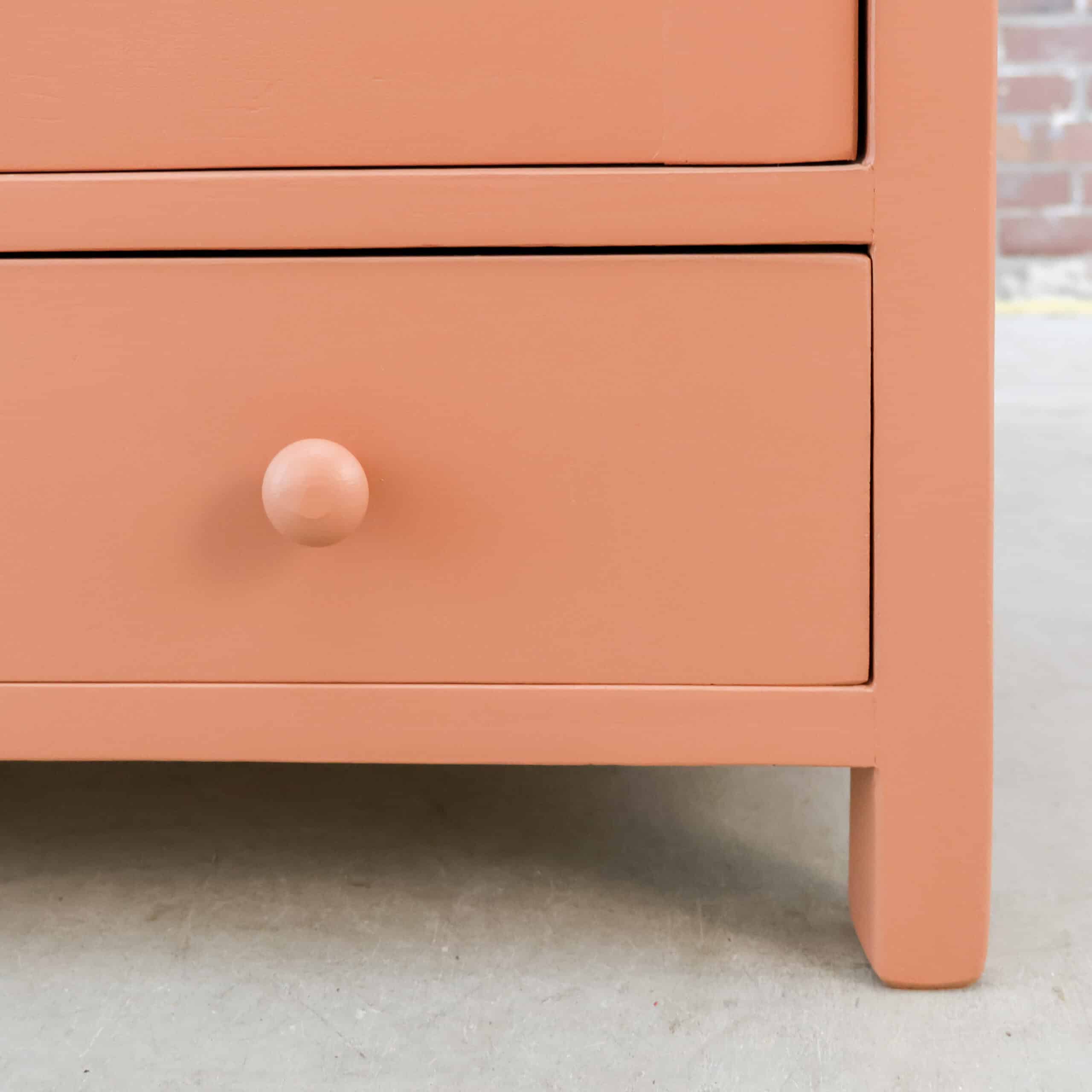 Deze brocante zalmroze linnenkast hebben we opgespeurd en opgeknapt in Hongarije. Zo hebben we haar oa nieuwe planken en een fleurig kleurtje gegeven! Klaar voor een tweede leven.
