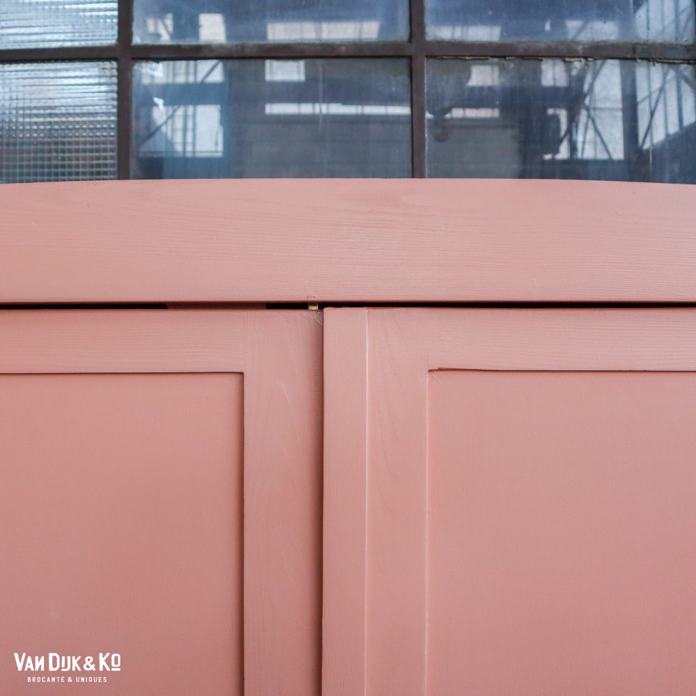 Deze brocante zalmroze linnenkast hebben we opgespeurd en opgeknapt in Hongarije. Zo hebben we haar oa nieuwe planken en een lieve roze kleur gegeven. Echt een leuke kast voor de kinderkamer.